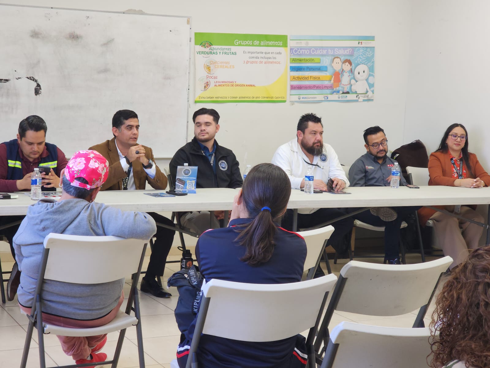 A la reunión también asistieron servidores públicos del Centro de Atención Tecnológica, Unidad de Atención y Justicia Alternativa Penal, quienes atendieron las inquietudes de los presentes y brindaron información sobre los mecanismos disponibles para la atención de denuncias y el seguimiento de casos; además de representantes del Comité Ciudadano de Seguridad Pública, de la Delegación Municipal y Policía Municipal.