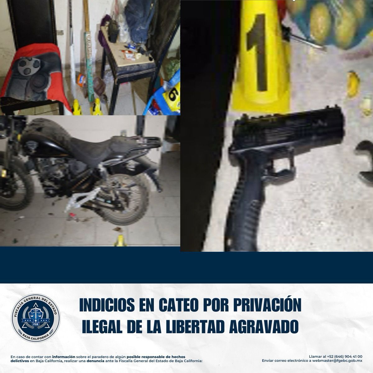 TECATE, BAJA CALIFORNIA. - La Fiscalía Regional de Tecate, a través de la Unidad de Investigación de Delitos Contra las Personas y su Libertad, informa que, como resultado de una investigación por el delito de privación ilegal de la libertad agravada, se llevó a cabo un cateo en un domicilio ubicado en la colonia Downey, en el municipio de Tecate.