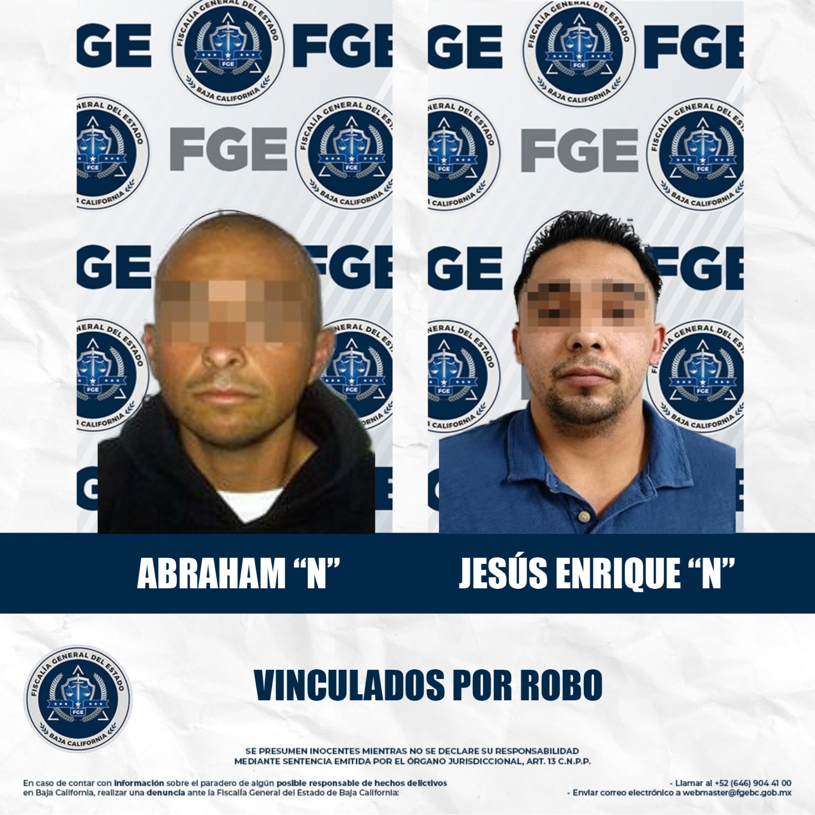 Mientras que en el caso de Jesús Enrique “N”, se le vinculó por robo calificado a lugar cerrado, ocurrido el 26 de abril de 2025 en un despacho jurídico del Centro Cívico.