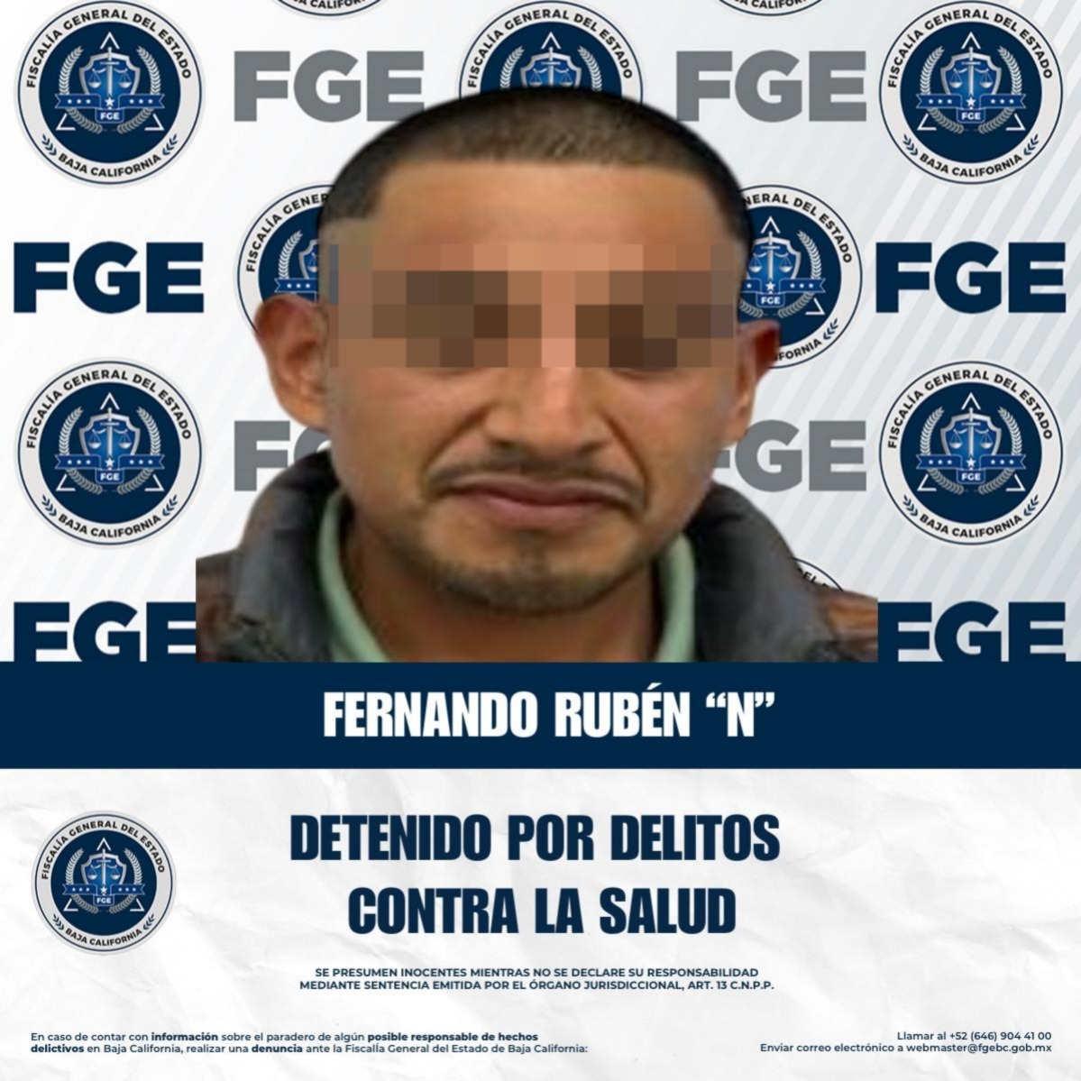 PLAYAS DE ROSARITO, BAJA CALIFORNIA. - La Fiscalía General del Estado, a través de la Fiscalía Especializada en Narcomenudeo, logró obtener la vinculación a proceso de Fernando Rubén “N”, por su probable responsabilidad en delitos contra la salud, en la modalidad de narcomenudeo, específicamente por la posesión del estupefaciente denominado marihuana. El imputado fue detenido el pasado 9 de diciembre de 2025, en la calle Leopoldo Arroyo de la colonia Plan Libertador, en Playas de Rosarito.