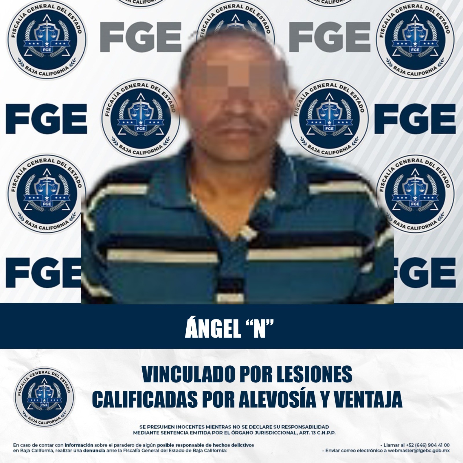 MEXICALI, BAJA CALIFORNIA. - La Fiscalía Regional de Mexicali, a través de la Unidad de Investigación de Delitos Foránea Ciudad Morelos, obtuvo la vinculación a proceso de Ángel “N” por el delito de lesiones calificadas por alevosía y ventaja.