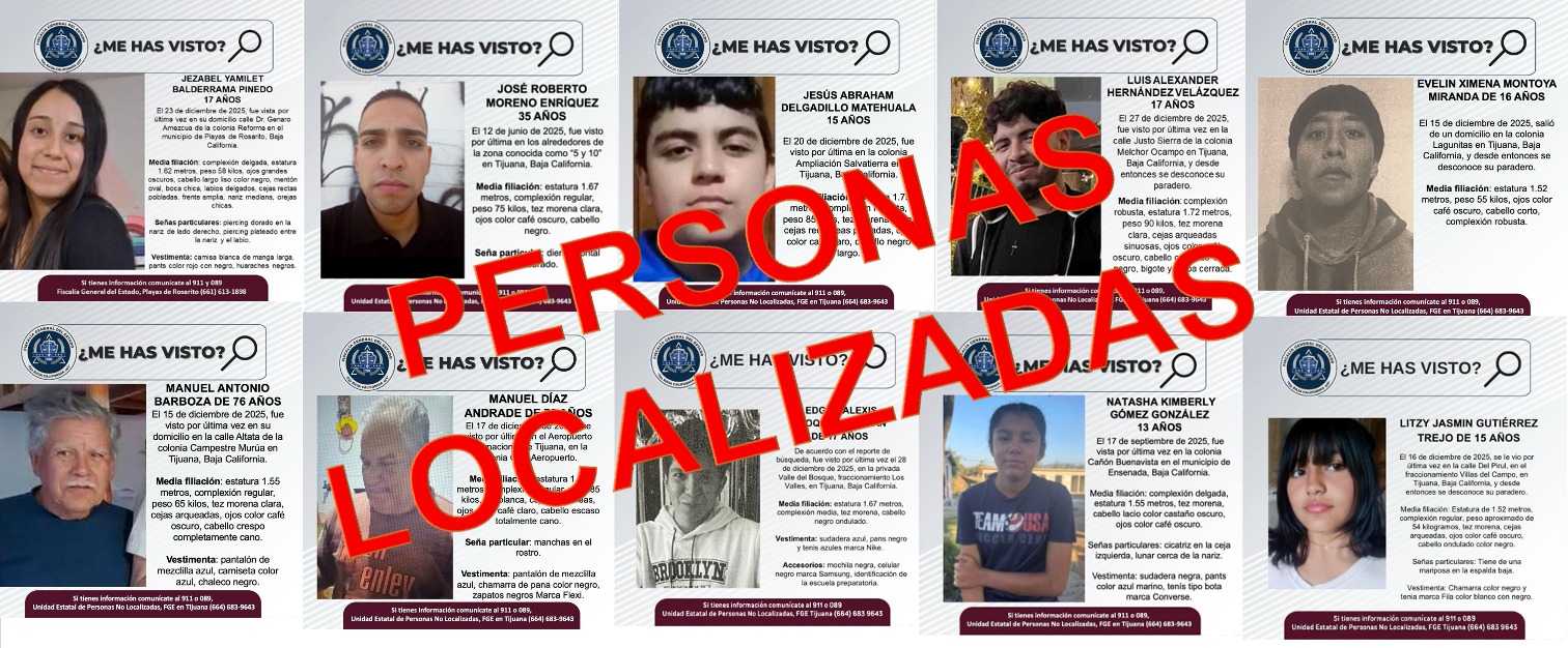 TIJUANA, BAJA CALIFORNIA. - Agentes Estatales de Investigación localizaron a 10 personas que habían sido reportadas como desaparecidas en Tijuana.