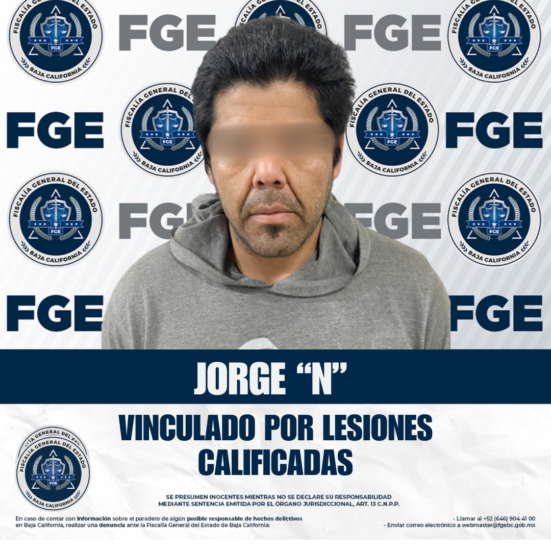 ENSENADA, BAJA CALIFORNIA. - La Fiscalía Regional de Ensenada, en coordinación con la Unidad de Investigación con Detenido, logró la vinculación a proceso de Jorge “N” por el delito de lesiones calificadas, derivado de los actos de investigación realizados.