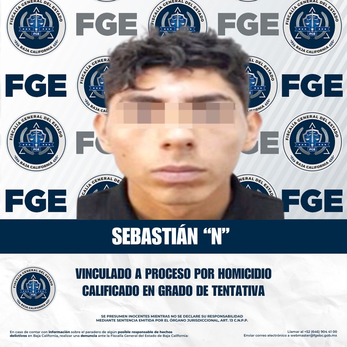 TIJUANA, BAJA CALIFORNIA. - La Fiscalía Especializada en Delitos Contra la Vida, adscrita a la Fiscalía General del Estado, obtuvo la vinculación a proceso de Sebastián “N”, por su presunta responsabilidad en el delito de homicidio calificado en su grado de ejecución de tentativa.