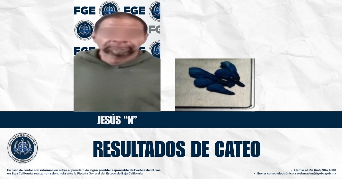 ENSENADA, BAJA CALIFORNIA. - La Fiscalía Especializada en Narcomenudeo llevó a cabo un cateo en la colonia Villa Fontana, en el municipio de Ensenada, como resultado de labores de investigación, logrando la detención de Jesús “N” y el aseguramiento de droga.