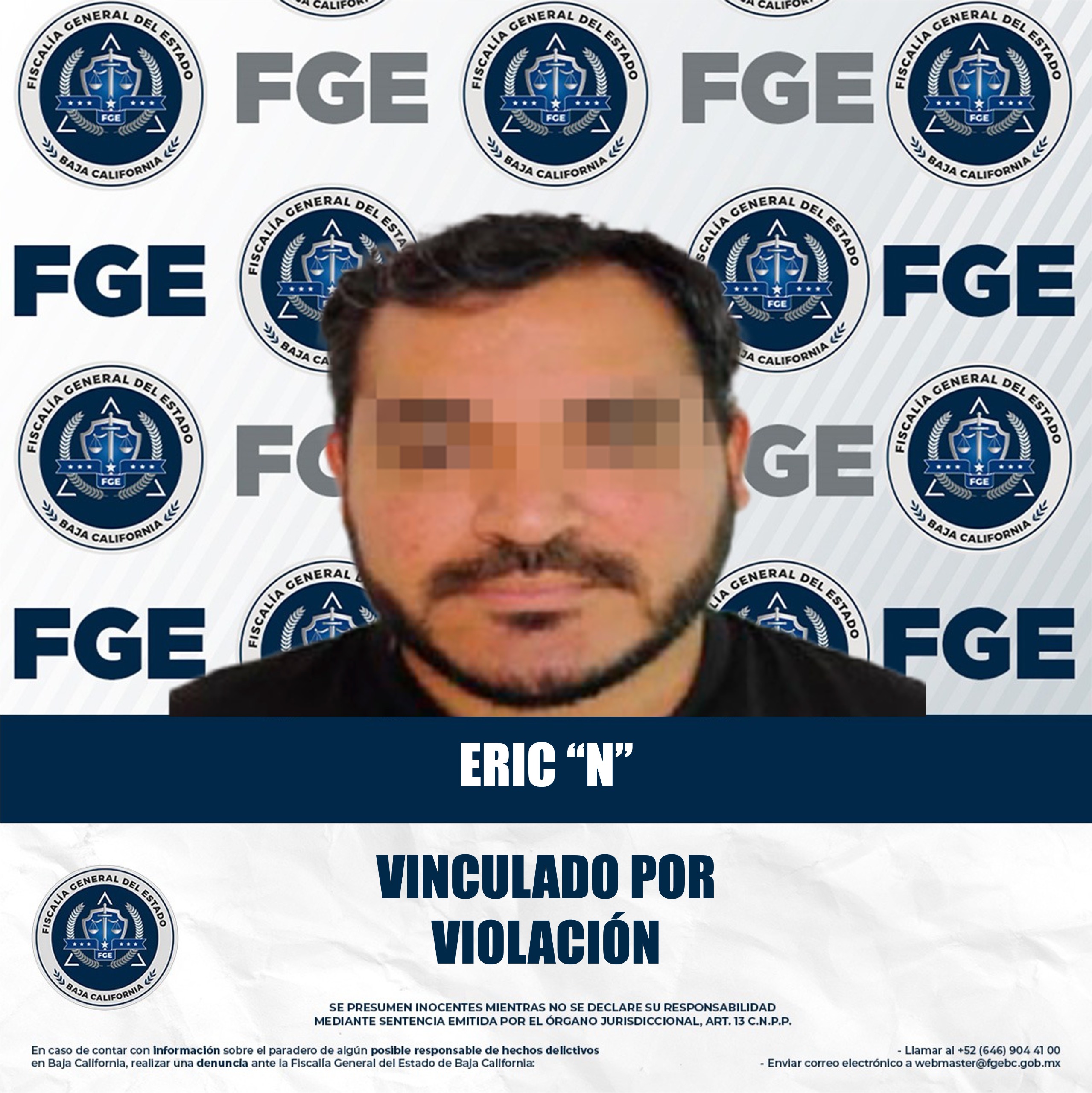MEXICALI, BAJA CALIFORNIA. - La Fiscalía General del Estado obtuvo la vinculación a proceso en contra de Eric “N”, por su probable responsabilidad en el delito de violación, cometido en agravio de una joven.
