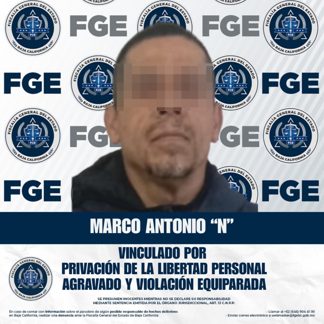 ENSENADA, BAJA CALIFORNIA. - La Fiscalía General del Estado informa que, como resultado de las investigaciones realizadas por la Fiscalía Especializada en Delitos Cometidos Contra la Mujer por Razón de Género, se obtuvo auto de vinculación a proceso en contra de Marco Antonio “N” por los delitos de privación de la libertad personal agravado y violación equiparada, reafirmando el compromiso institucional con el acceso a la justicia y la protección de las mujeres.