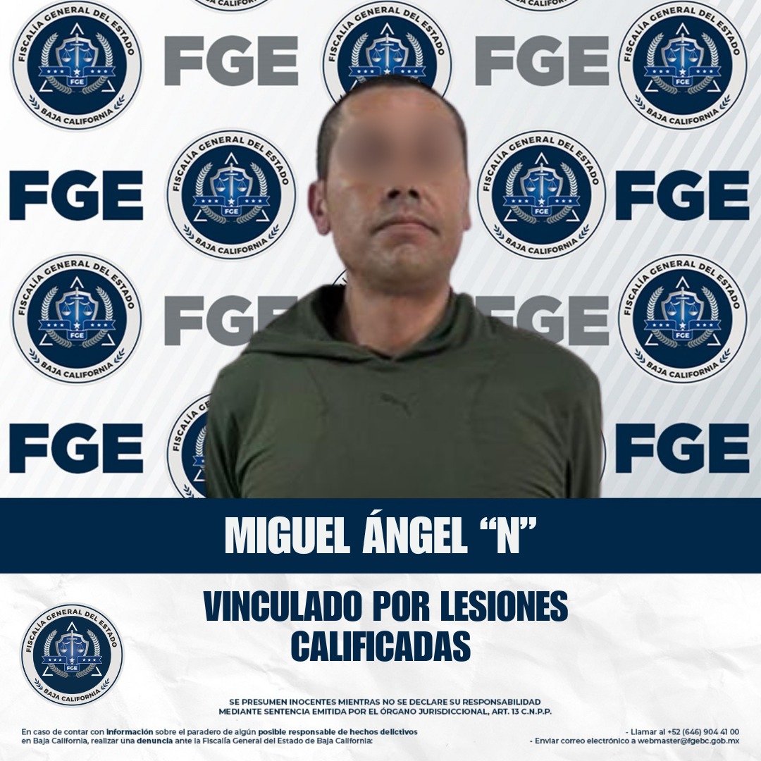 ENSENADA, BAJA CALIFORNIA. - La Fiscalía Regional de Ensenada logró la vinculación a proceso de Miguel Ángel “N”, imputado por lesiones calificadas, tras una agresión ocurrida en la zona de Cañón Buenavista, de Maneadero. El imputado fue detenido con orden de aprehensión y se le dictó prisión preventiva oficiosa mientras se desarrolla la investigación complementaria.