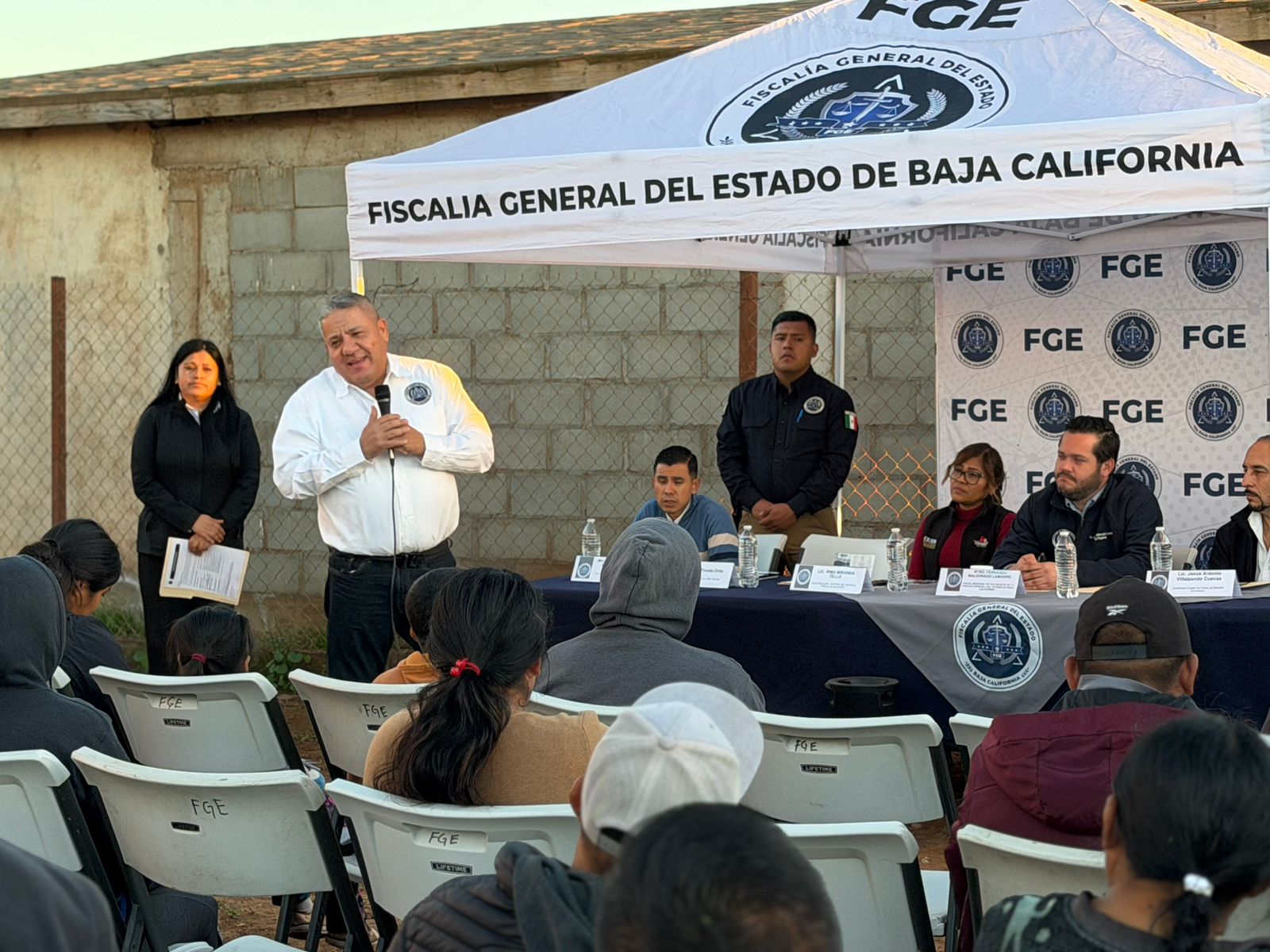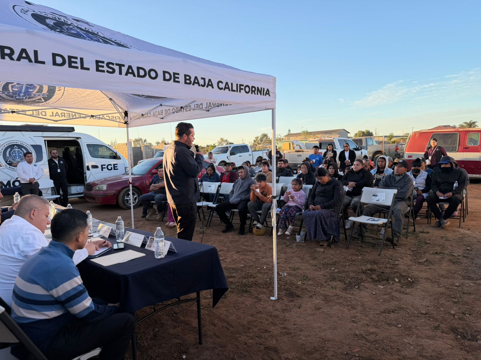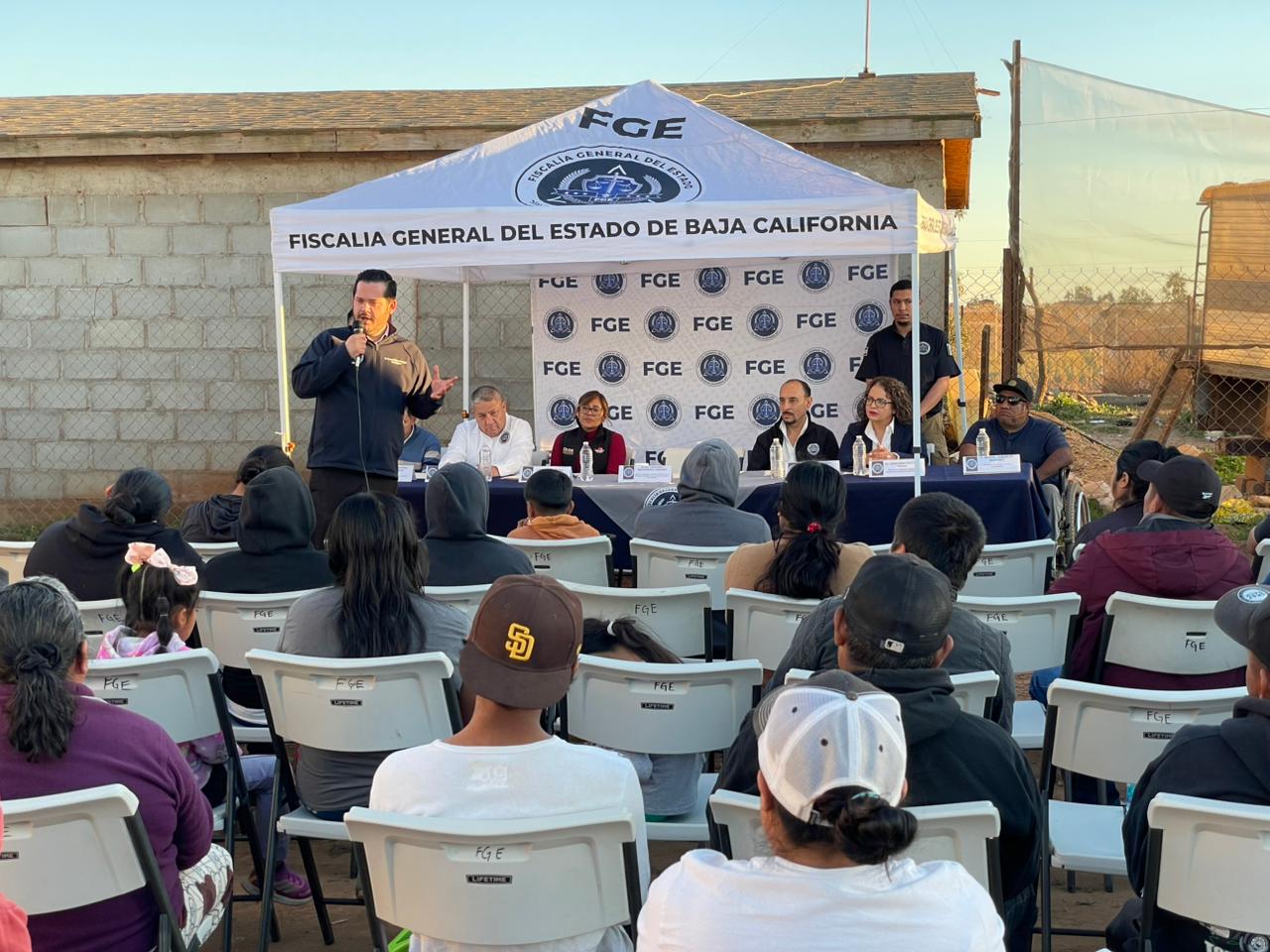 Durante esta actividad se contó con la presencia del Fiscal Regional de San Quintín, Mtro. Fernando Maldonado Lamadrid; el titular estatal del programa Fiscal Enlace Contigo, Mtro. Sergio Pineda Ortiz; el coordinador del CAT, Mtro. Jesús Villalpando Cuevas; la delegada del Centro de Justicia para las Mujeres, Lic. Irma Miranda Tello; el representante de la colonia Buena Vista, Manuel González Martínez; así como intérpretes-traductores adscritos a la Fiscalía en los idiomas triqui, mixteco y zapoteco.