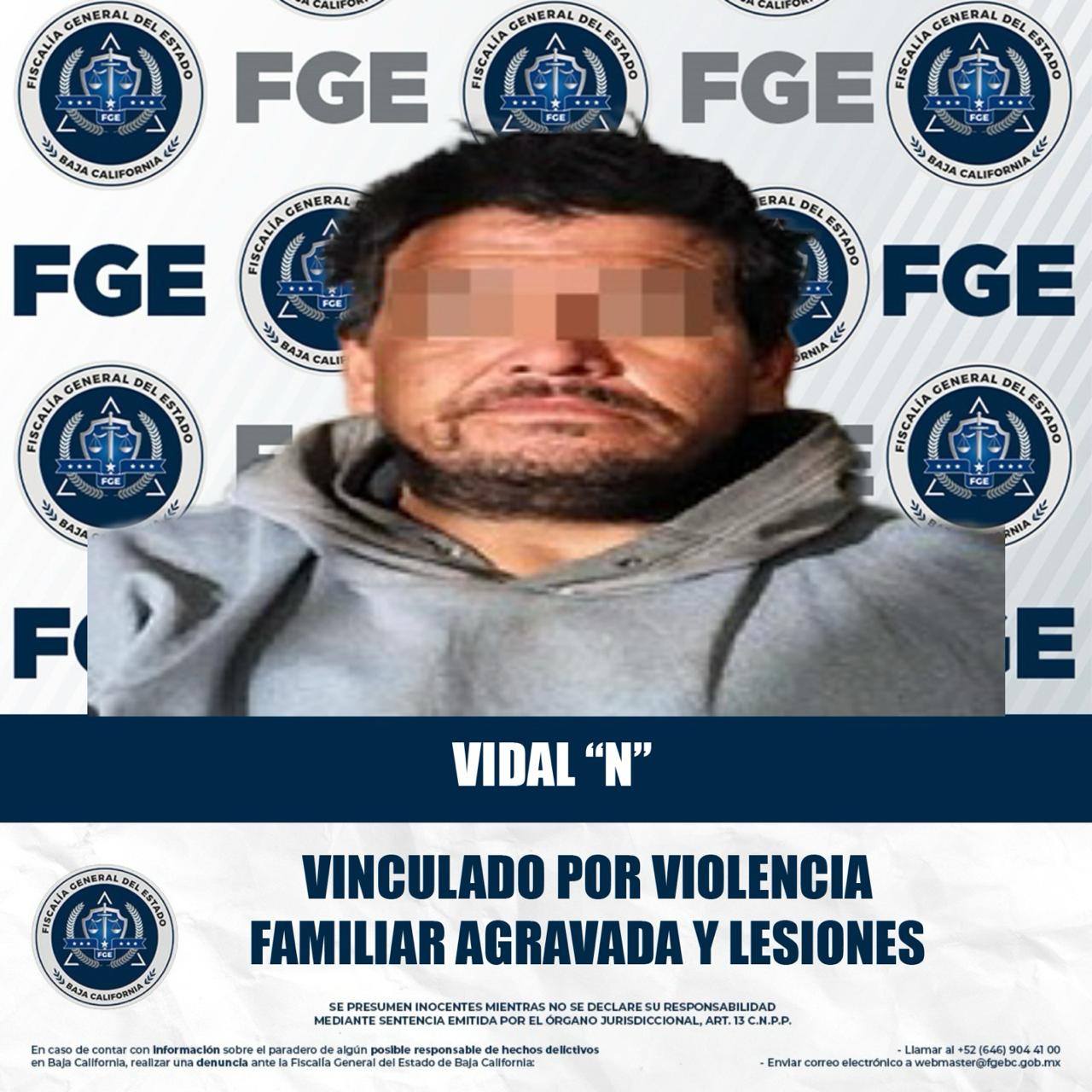 MEXICALI, BAJA CALIFORNIA. - La Fiscalía Regional de Mexicali, a través de la Unidad de Investigación de Delitos Foránea Ciudad Morelos, obtuvo la vinculación a proceso de Vidal “N”, esto por su presunta participación en los delitos de violencia familiar agravada y lesiones.