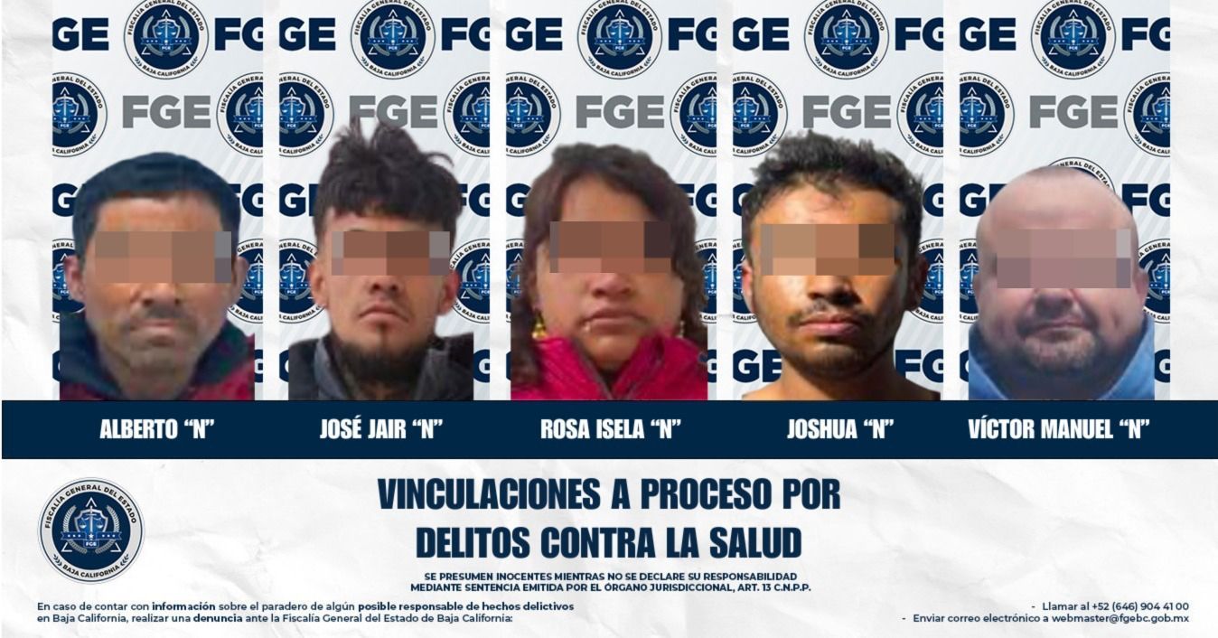 TIJUANA, BAJA CALIFORNIA. - Como resultado del trabajo de investigación y la integración de pruebas sólidas presentadas por la Fiscalía General del Estado, a través de la Fiscalía Especializada en Narcomenudeo, fueron vinculadas a proceso cinco personas por su presunta responsabilidad en delitos contra la salud.