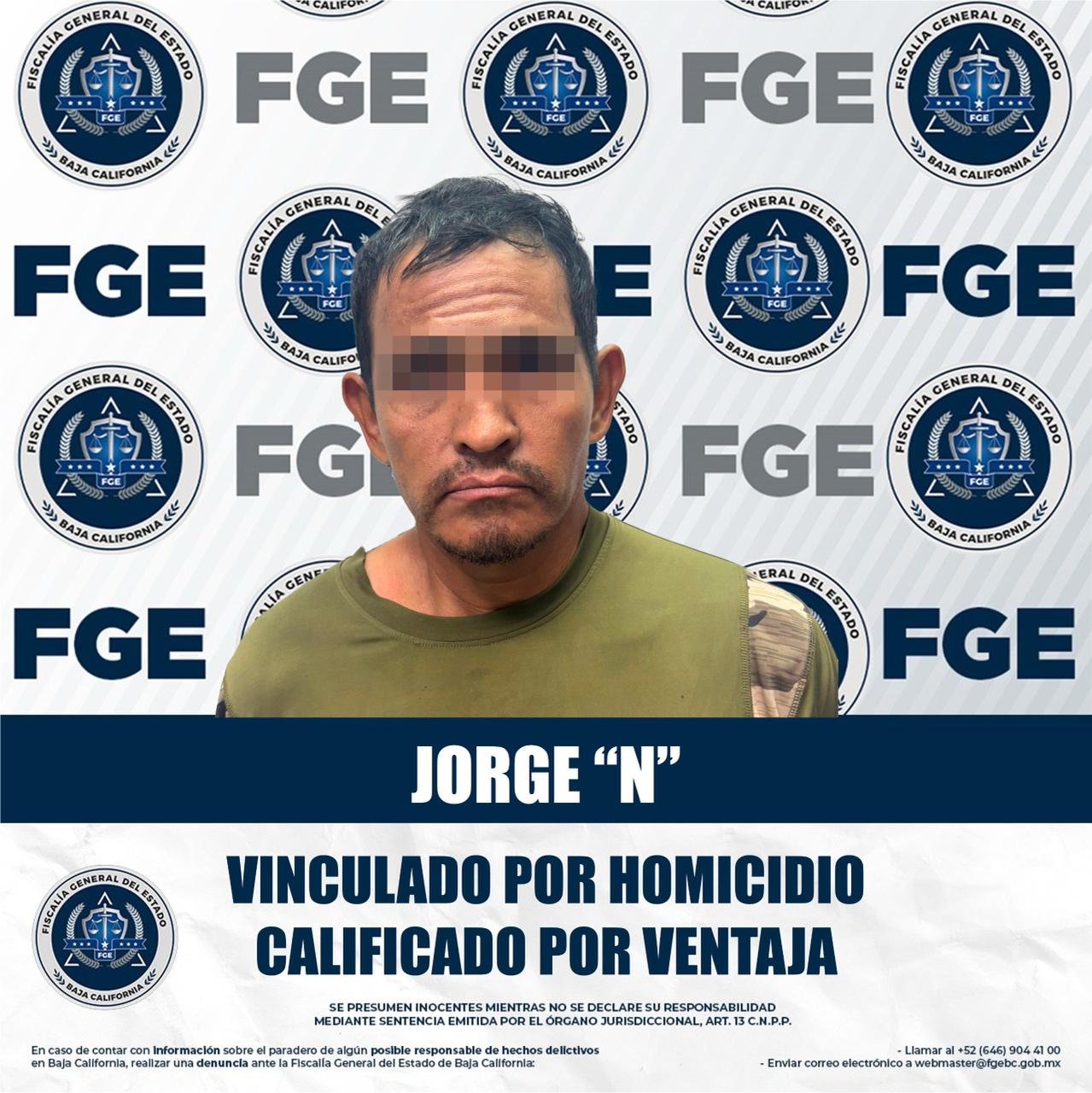 MEXICALI, BAJA CALIFORNIA. - La Fiscalía General del Estado (FGE) obtuvo la vinculación a proceso penal en contra de Jorge “N”, por su probable responsabilidad en el delito de homicidio calificado con ventaja.