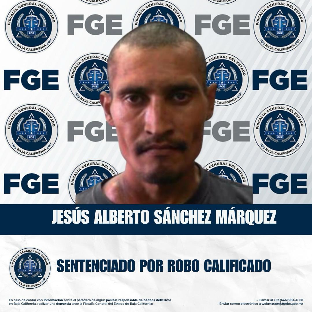 ENSENADA, BAJA CALIFORNIA. - La Fiscalía Regional de Ensenada informa que, a través de la Unidad de Investigación de Robos, se obtuvo una sentencia de prisión en contra de Jesús Alberto Sánchez Márquez, por el delito de robo cometido en un taller mecánico de la ciudad.