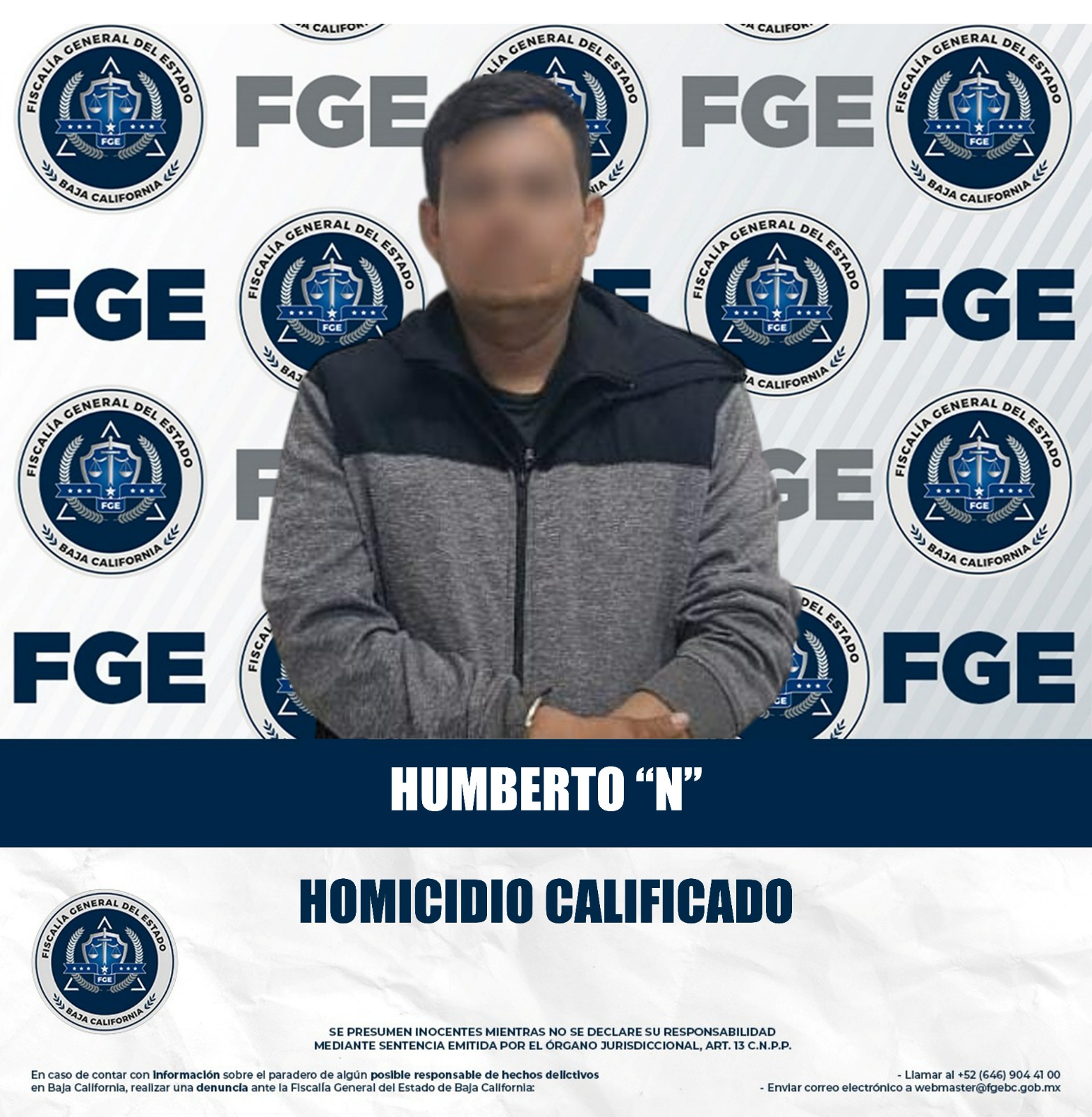 La orden fue cumplimentada el 16 de enero de 2026, mediante un operativo efectuado por agentes estatales de investigación adscritos a San Felipe, en el Ejido Oviedo Mota Reacomodo, en el Valle de Mexicali.