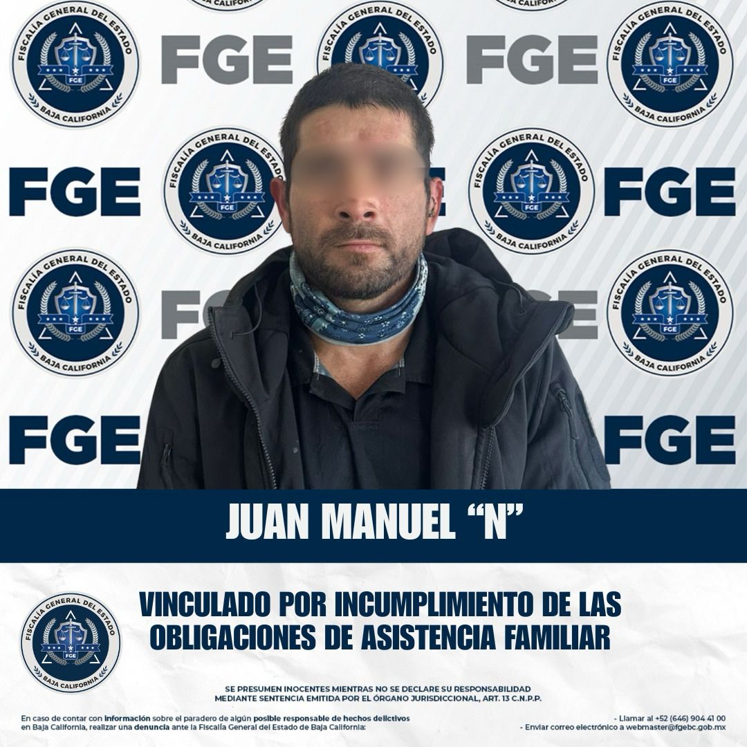 ENSENADA, BAJA CALIFORNIA. - La Fiscalía Regional de Ensenada, a través de la Unidad de Tramitación Masiva de Causas, logró que el Juez de Control emitiera auto de vinculación a proceso en contra de Juan Manuel “N”, imputado por el delito de incumplimiento de las obligaciones de asistencia familiar.