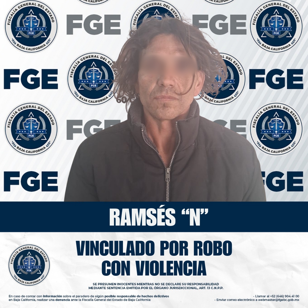 ENSENADA, BAJA CALIFORNIA. - La Fiscalía Regional de Ensenada, en coordinación con la Unidad de Investigación con Detenido, obtuvo la vinculación a proceso de Ramsés “N” por el delito de robo con violencia equiparado, derivado de las diligencias de investigación realizadas tras su detención.
