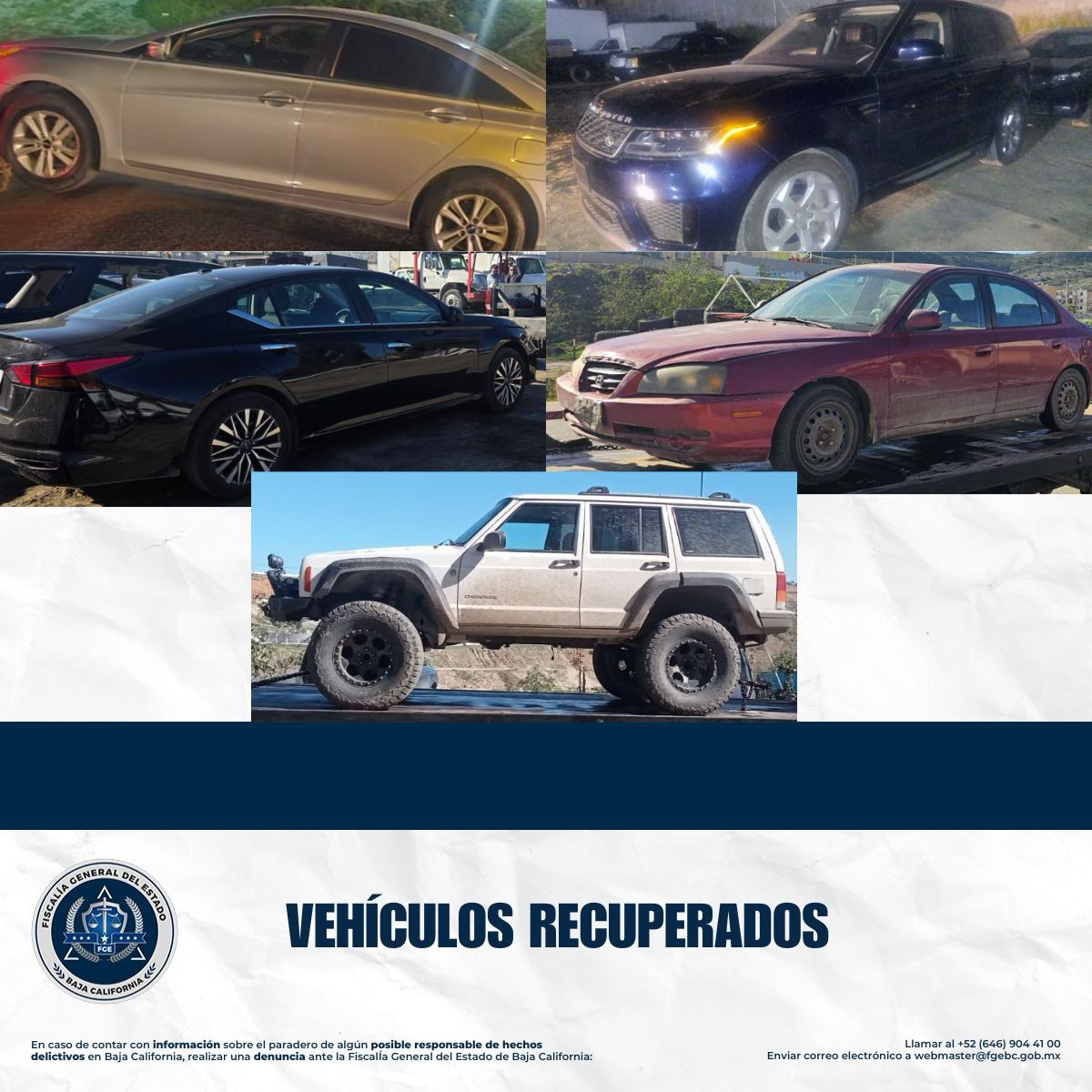 TIJUANA, BAJA CALIFORNIA. - a Fiscalía Regional de Tijuana, a través de la Unidad de Investigación Especializada en Robo de Vehículos, informa que se logró la recuperación de nueve vehículos con reporte de robo en distintos puntos de la ciudad, como resultado de labores de investigación y operativos estratégicos.