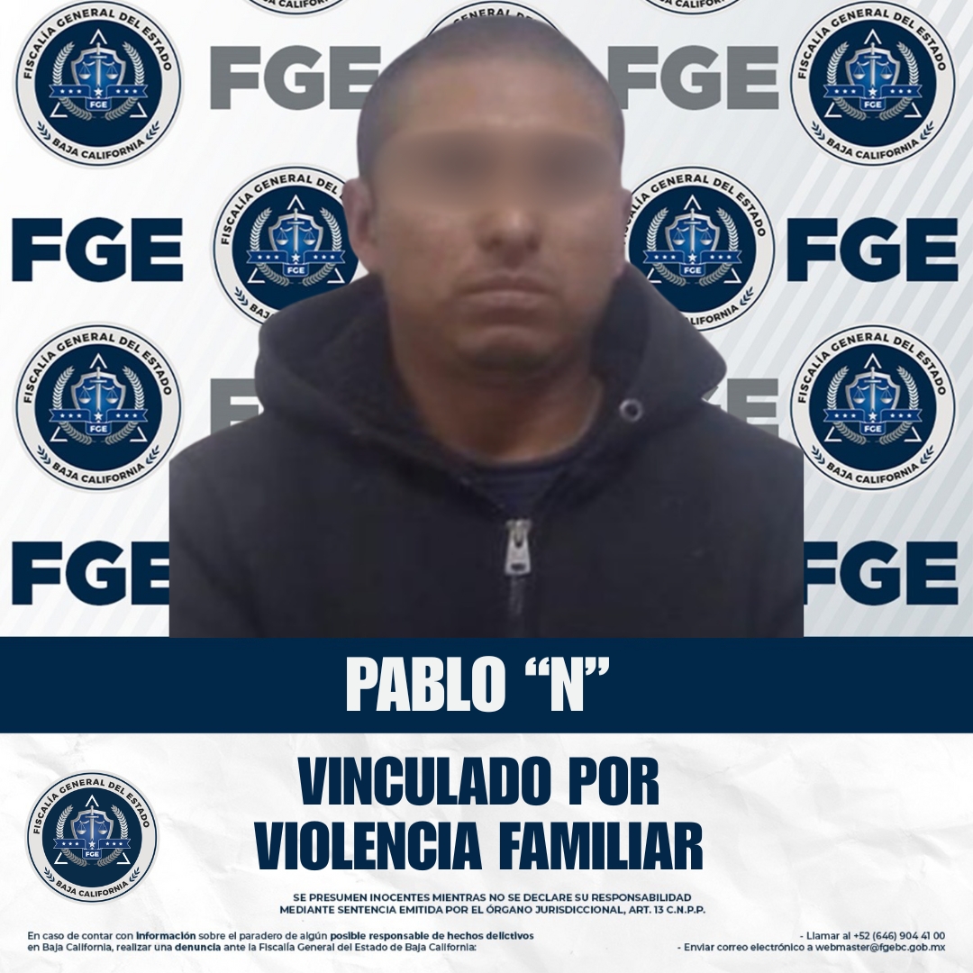 SAN QUINTÍN, BAJA CALIFORNIA. - La Fiscalía Regional de San Quintín obtuvo la vinculación a proceso de Pablo “N” por el delito de violencia familiar, como resultado de las diligencias realizadas.