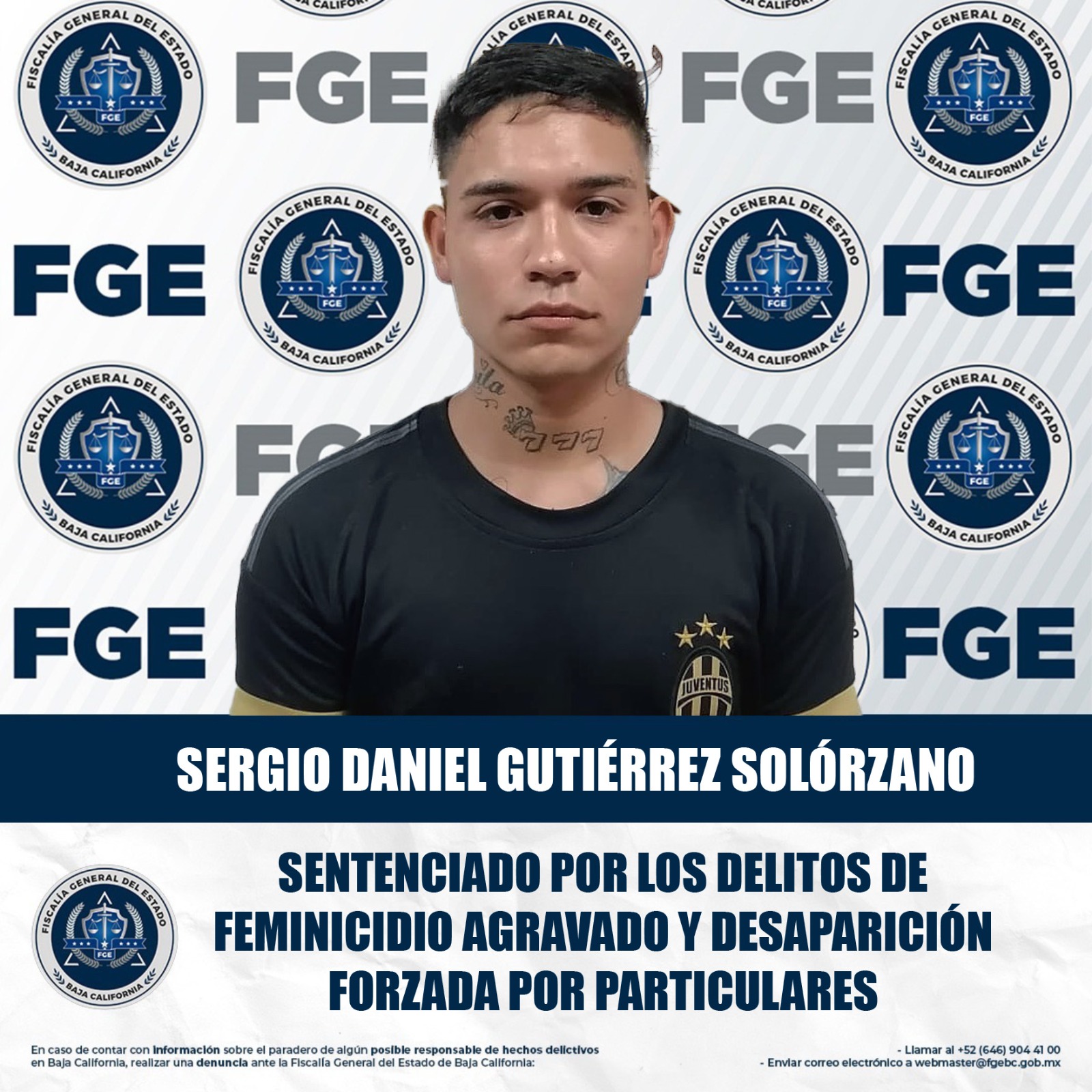 MEXICALI, BAJA CALIFORNIA. - La Fiscalía General del Estado, a través de la Fiscalía de Unidades Especiales, obtuvo sentencia condenatoria en contra de Sergio Daniel Gutiérrez Solórzano, al acreditarse ante el Tribunal de Juicio Oral su responsabilidad penal por los delitos de feminicidio agravado y desaparición forzada cometida por particulares, en agravio de una joven universitaria.