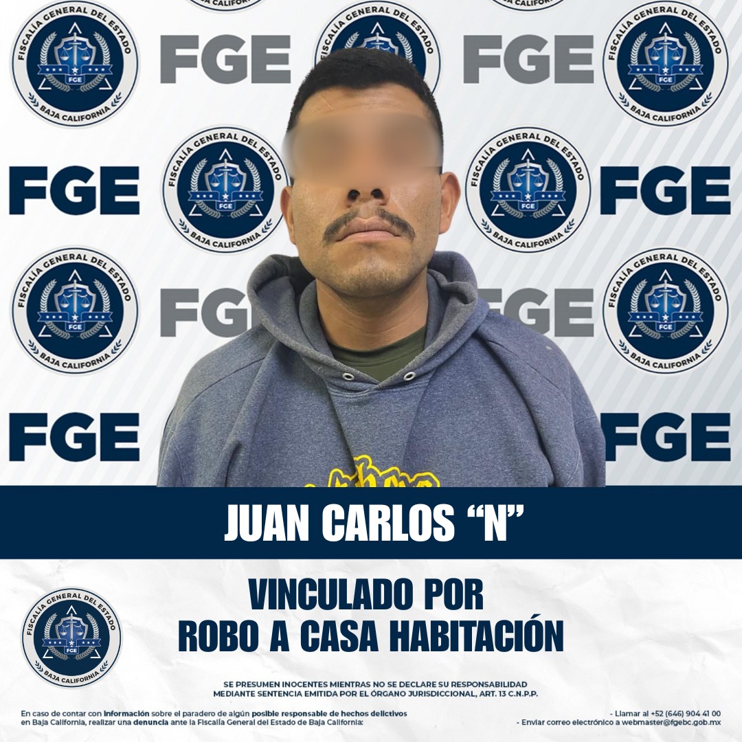 SAN QUINTÍN, BAJA CALIFORNIA. - La Fiscalía Regional de San Quintín logró la vinculación a proceso de Juan Carlos “N” por su presunta responsabilidad en el delito de robo calificado a casa habitación.