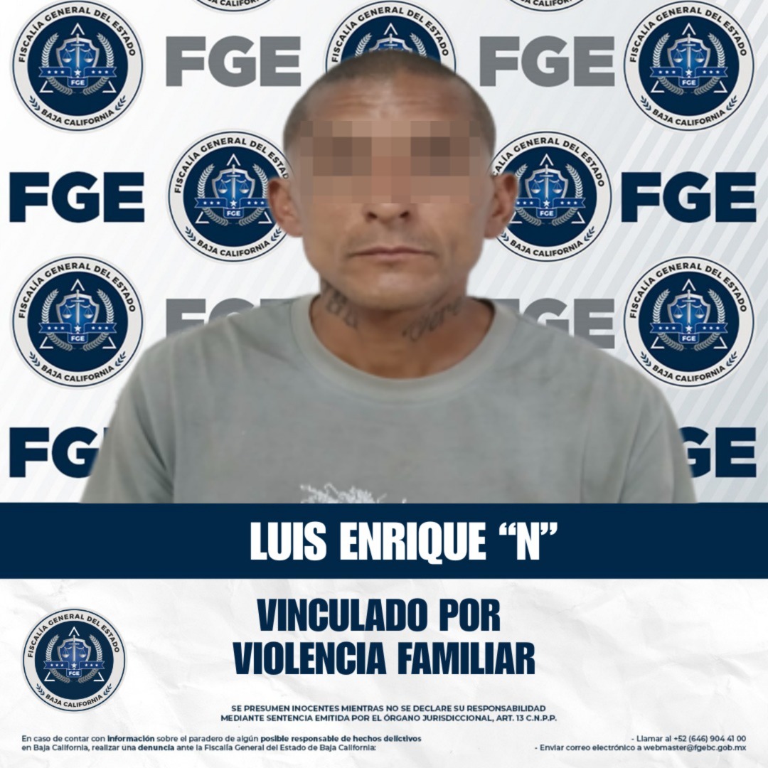 ENSENADA, BAJA CALIFORNIA. - La Fiscalía General del Estado, a través de la Fiscalía Especializada en Delitos Contra Mujeres por Razón de Género, obtuvo la vinculación a proceso de Luis Enrique “N” por el delito de violencia familiar. En audiencia, el Juez de Control determinó además imponer la medida cautelar de prisión preventiva justificada, con base en los datos de prueba presentados por el Ministerio Público.
