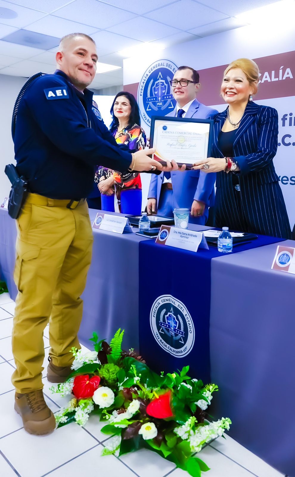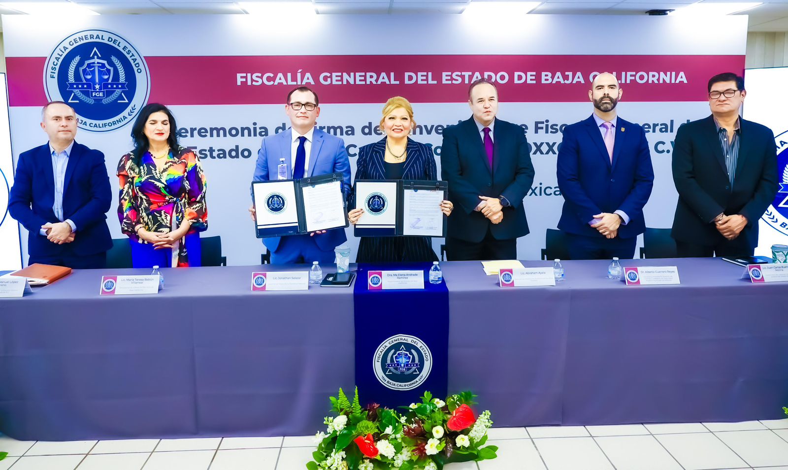 En la firma del convenio estuvieron presentes el Coordinador de Gabinete de la FGE, Juan Carlos Buenrostro Molina; el Fiscal Central, Jesús Manuel López Moreno; y el comandante de la Agencia Estatal de Mexicali, Julio Rodríguez Campos.