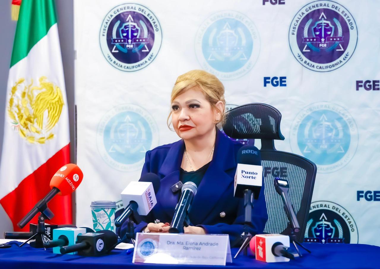 TIJUANA, BAJA CALIFORNIA. - La Fiscal General del Estado, Dra. Ma. Elena Andrade Ramírez, informó en conferencia de prensa que, como resultado del Operativo Fuerza Fiscalía, implementado de manera permanente en toda la entidad, se han logrado avances significativos en investigaciones y detenciones relevantes, reafirmando el compromiso institucional de investigar cada caso hasta las últimas consecuencias.
