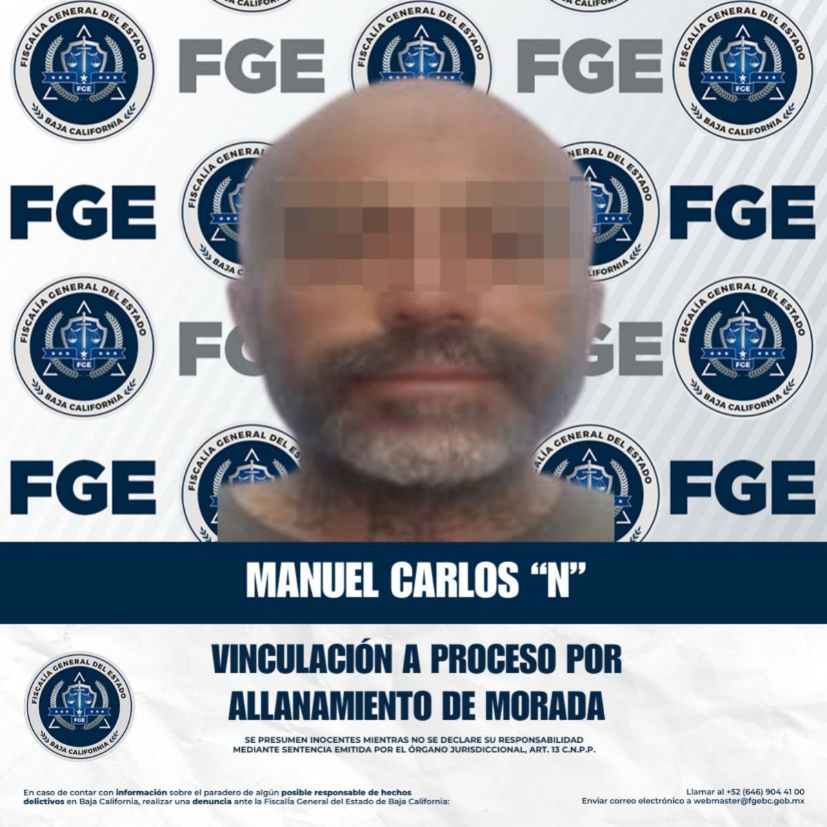 TIJUANA, BAJA CALIFORNIA. - La Fiscalía General del Estado informa que, como resultado de los elementos de prueba presentados por el Ministerio Público de la Fiscalía Regional de Tijuana, el juez de control determinó vincular a proceso a un imputado por el delito de allanamiento de morada.