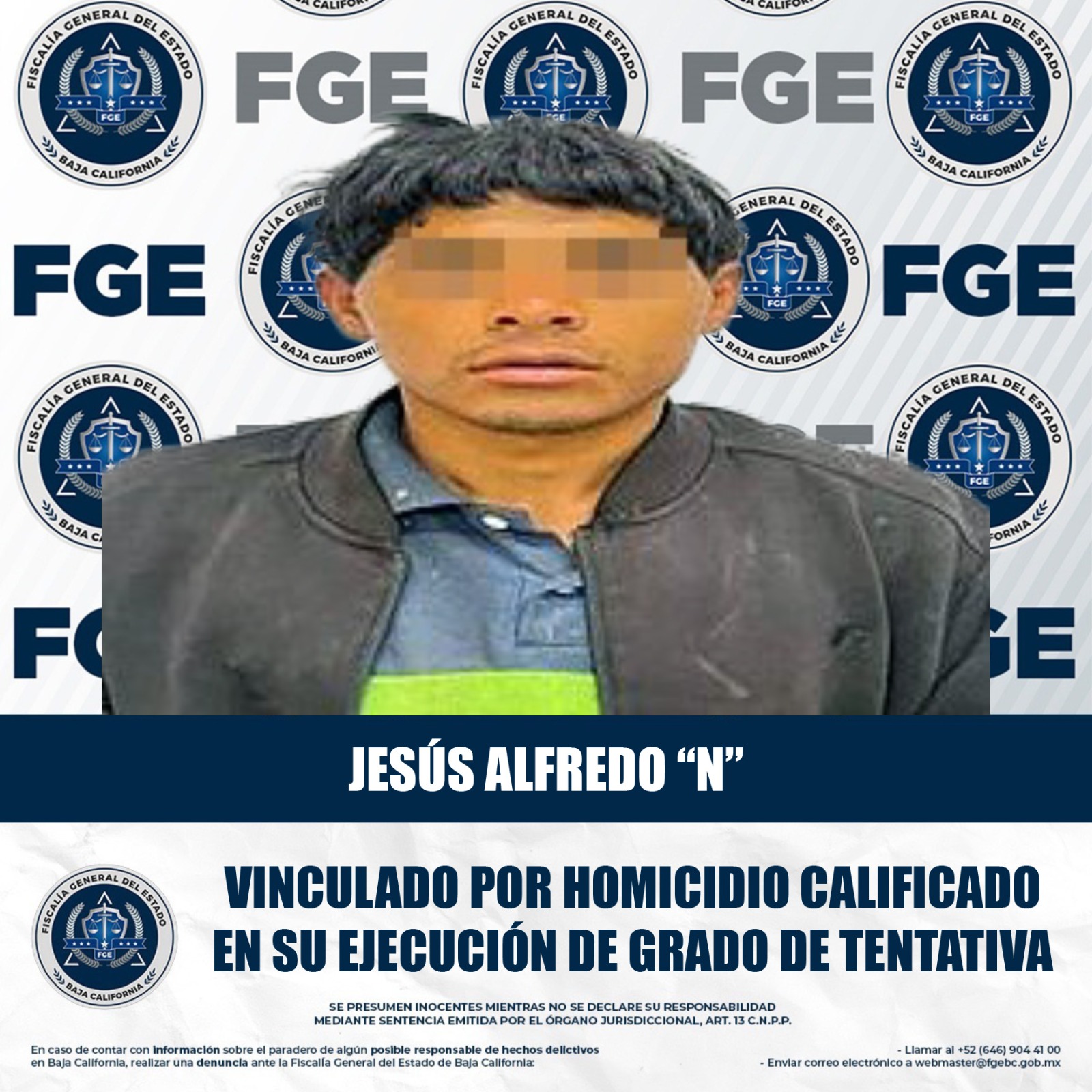 MEXICALI, BAJA CALIFORNIA. - La Fiscalía Regional de Mexicali obtuvo la vinculación a proceso de Jesús Alfredo “N”, presunto responsable de intentar privar de la vida a una pareja en el poblado Guadalupe Victoria.