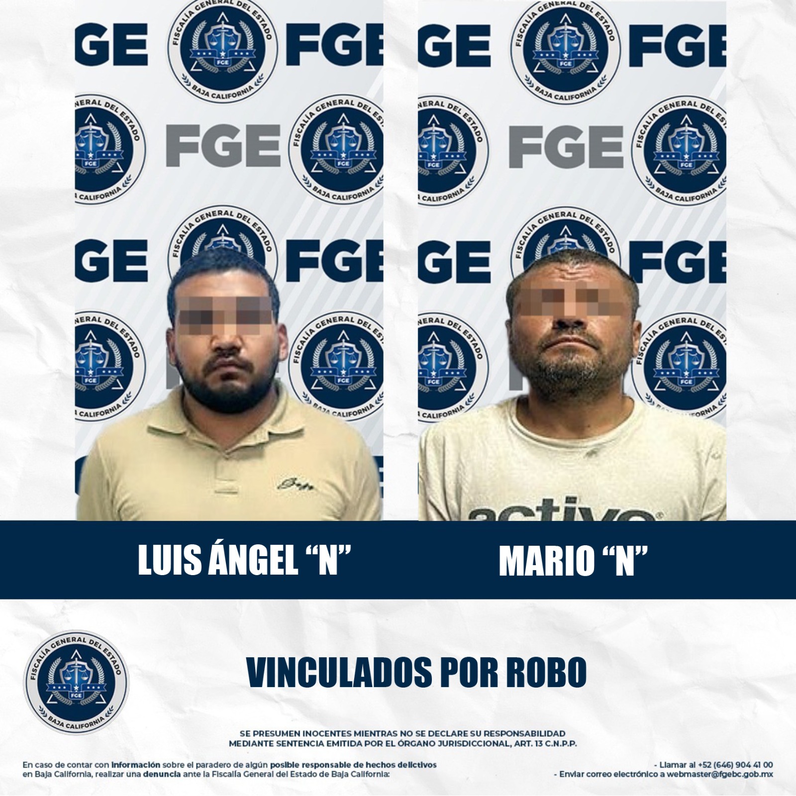 MEXICALI, BAJA CALIFORNIA. - La Fiscalía Regional de Mexicali, a través de la Unidad de Investigación de Robo, logró en audiencias por separado, la vinculación a proceso de dos hombres relacionados en distintos incidentes.