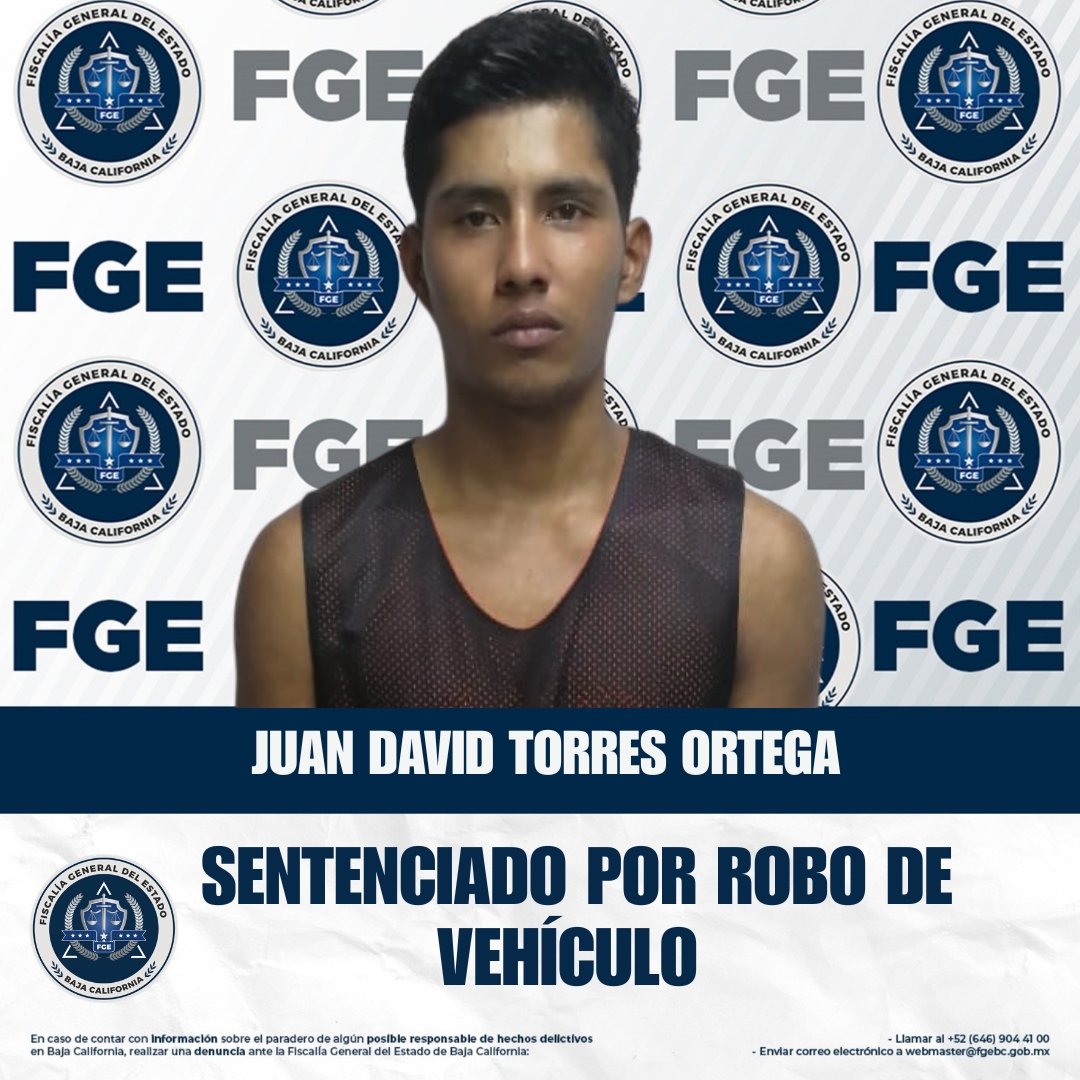 ENSENADA, BAJA CALIFORNIA. - La Fiscalía Regional de Ensenada, a través de la Unidad de Investigación de Robo de Vehículos, obtuvo sentencia condenatoria en contra de Juan David Torres Ortega por el delito de robo de vehículo, resultado de la integración sólida de la carpeta de investigación y de la presentación de los elementos de prueba ante la autoridad judicial.