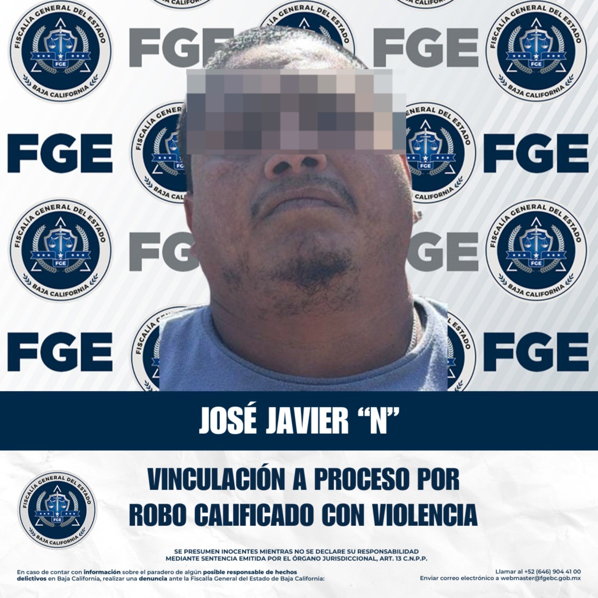 TIJUANA, BAJA CALIFORNIA. - La Fiscalía Regional de Tijuana obtuvo la vinculación a proceso de José Javier “N” por su presunta responsabilidad en el delito de robo calificado cometido de noche con violencia.