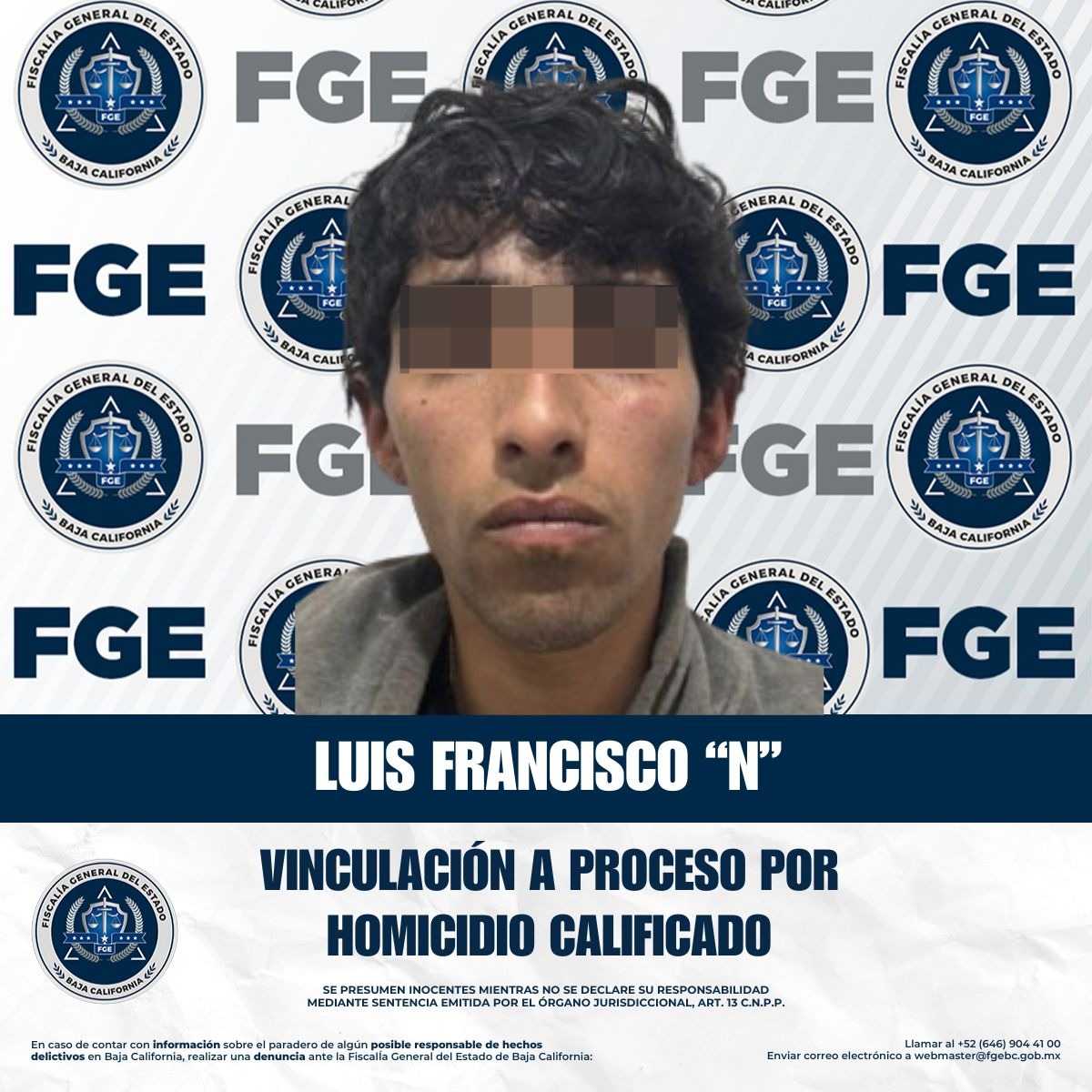 TIJUANA, BAJA CALIFORNIA. - La Fiscalía General del Estado, a través de la Fiscalía Especializada en Delitos Contra la Vida, obtuvo la vinculación a proceso y la imposición de la medida cautelar de prisión preventiva oficiosa en contra de Luis Francisco “N”, alias “El Teca”, por el delito de homicidio calificado.
