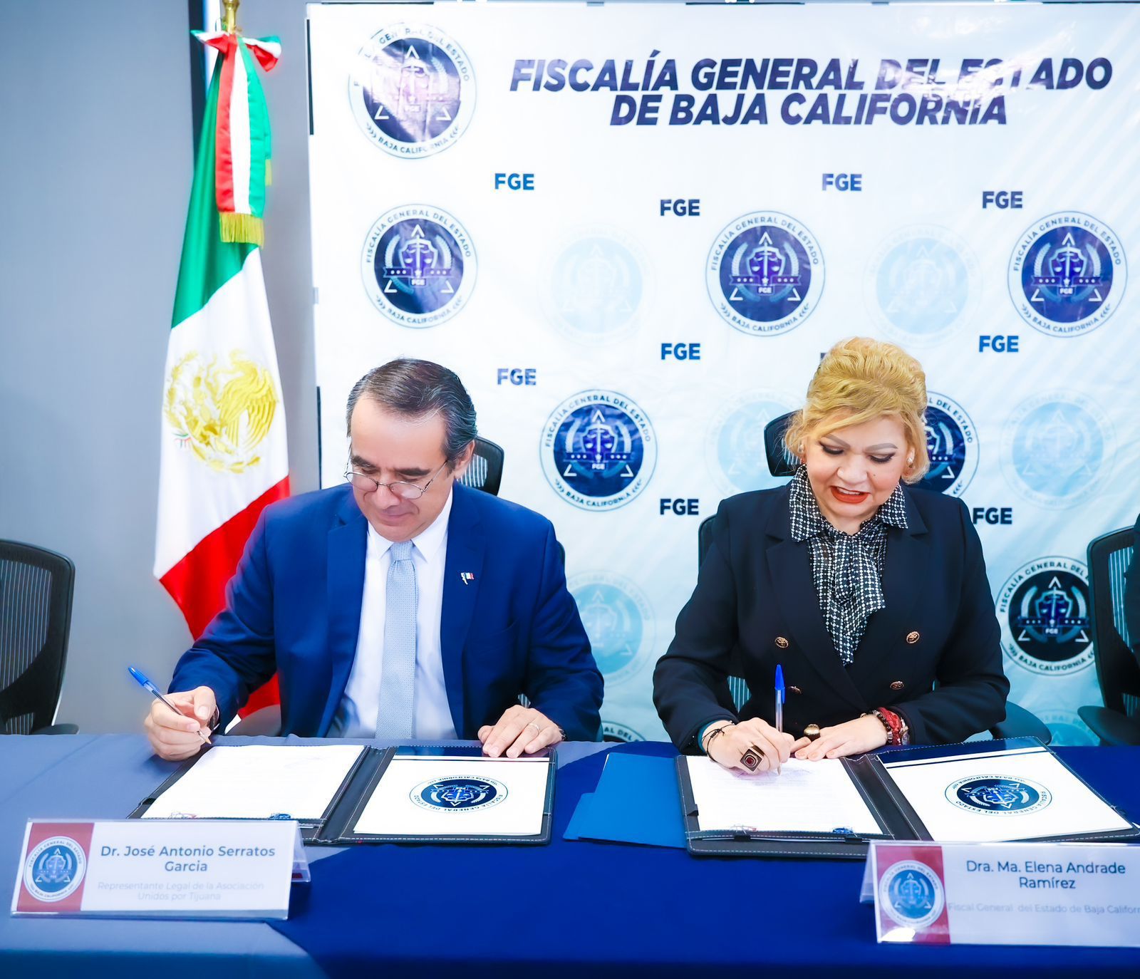 TIJUANA, BAJA CALIFORNIA. - Con el objetivo de fortalecer la coordinación entre autoridades y sociedad civil en materia de seguridad y atención ciudadana, la Fiscalía General del Estado de Baja California, bajo la titularidad de la Dra. Ma. Elena Andrade Ramírez firmó un convenio de colaboración con la asociación civil Grupo Unidos por Tijuana.