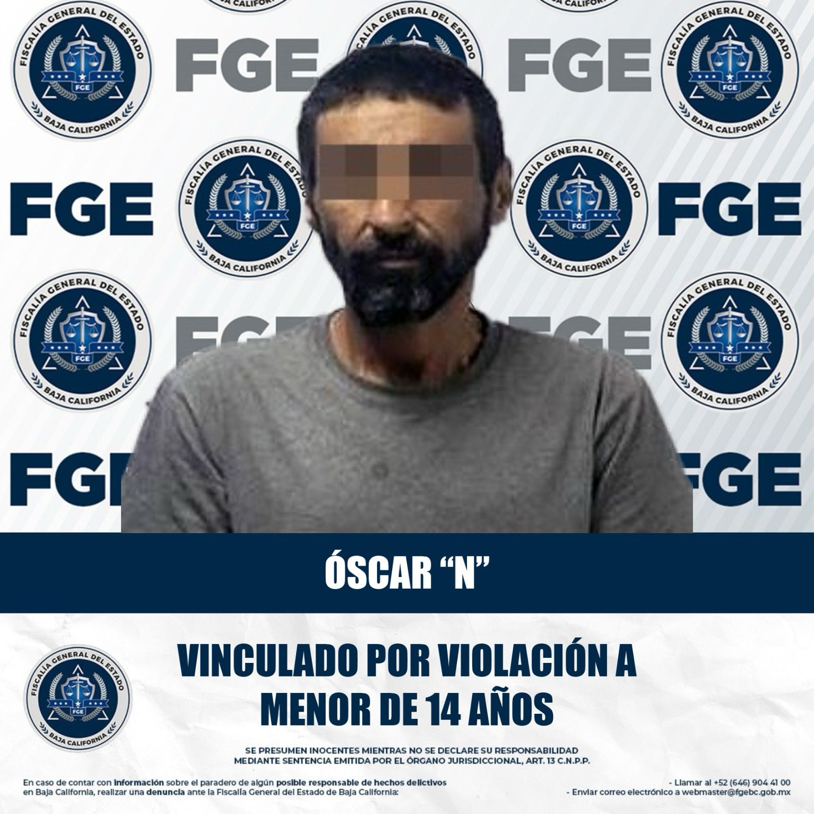 MEXICALI, BAJA CALIFORNIA. - La Fiscalía General del Estado (FGE), a través de la Unidad de Investigación de Delitos Foránea de Ciudad Morelos de la Fiscalía Regional de Mexicali, obtuvo la vinculación a proceso de un sujeto por su presunta responsabilidad en delitos de naturaleza sexual en agravio de un menor de edad.