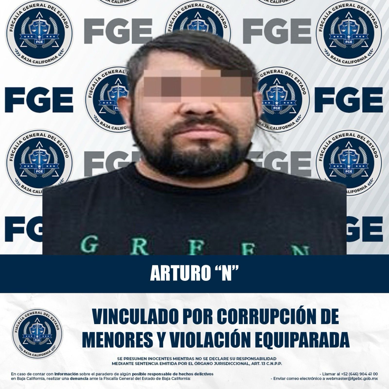 MEXICALI, BAJA CALIFORNIA. - La Fiscalía Regional de Mexicali obtuvo la vinculación a proceso de un individuo presuntamente involucrado en los delitos de corrupción de menores y violación equiparada, con base en los elementos de prueba presentados ante el Juez de Control.