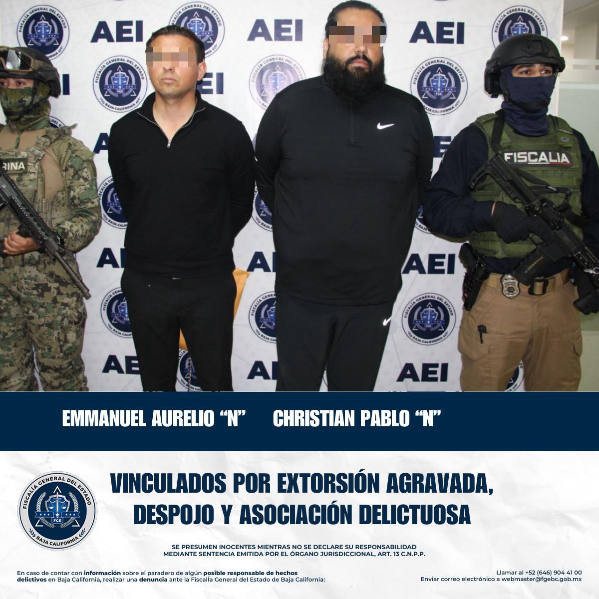 TIJUANA, BAJA CALIFORNIA. - La Fiscalía General del Estado, bajo la conducción de la Dra. Ma. Elena Andrade Ramírez, obtuvo un importante avance en la desarticulación de la banda delictiva conocida como el “Cártel Inmobiliario” en Baja California. A través de la labor de la Unidad de Investigación Especializada en Delitos Patrimoniales de la Fiscalía Regional de Tijuana, se logró la vinculación a proceso de Christian Pablo “N” y Emmanuel Aurelio “N”. Durante la audiencia celebrada el pasado 31 de marzo de 2026, el juez determinó que existen elementos suficientes para proceder legalmente contra quienes son señalados como presuntos líderes de esta organización criminal.