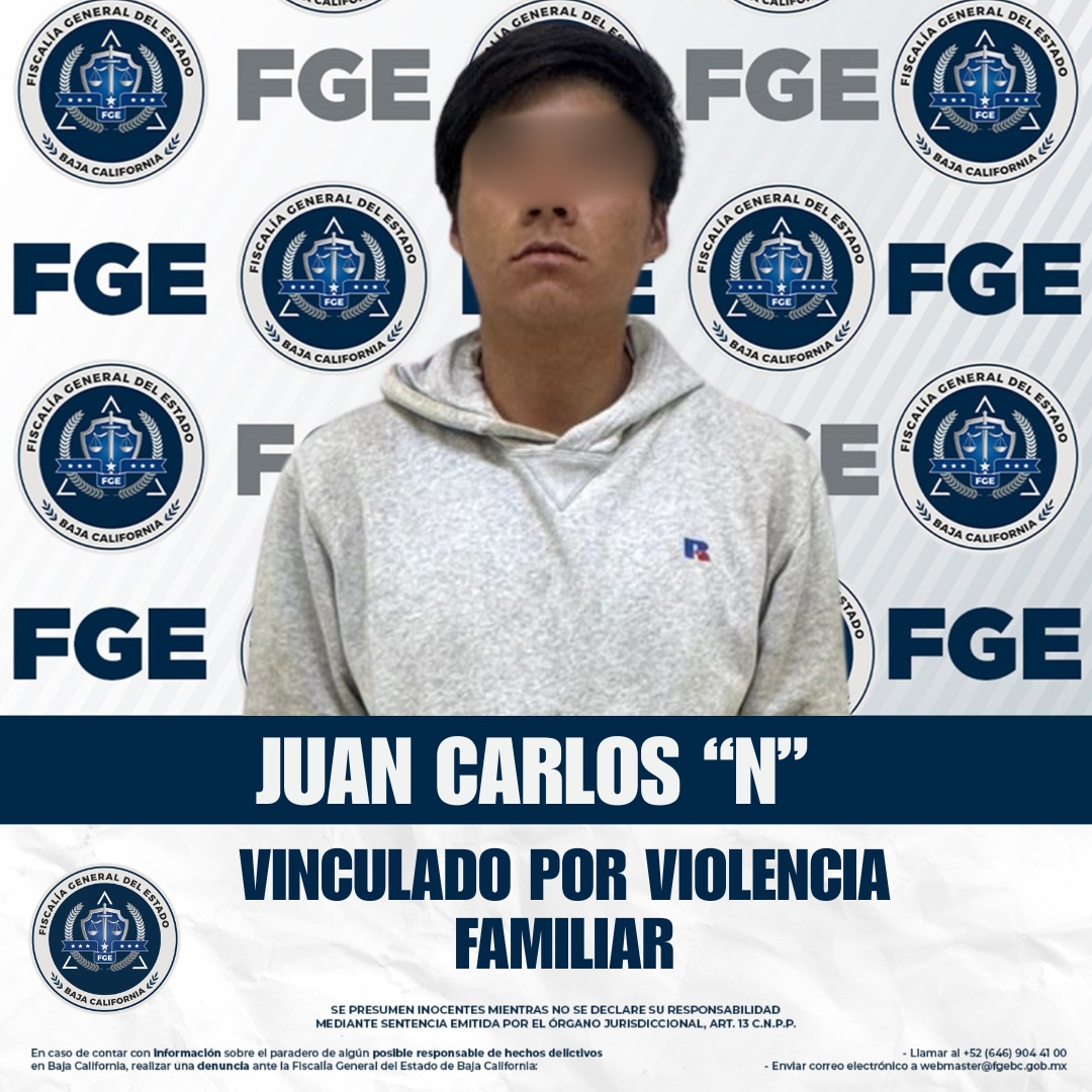 SAN QUINTÍN, BAJA CALIFORNIA. - La Fiscalía Regional de San Quintín informa que, derivado de los datos de prueba presentados por el agente del Ministerio Público ante el juez de control, se obtuvo la vinculación a proceso de Juan Carlos “N” por su probable responsabilidad en el delito de violencia familiar.