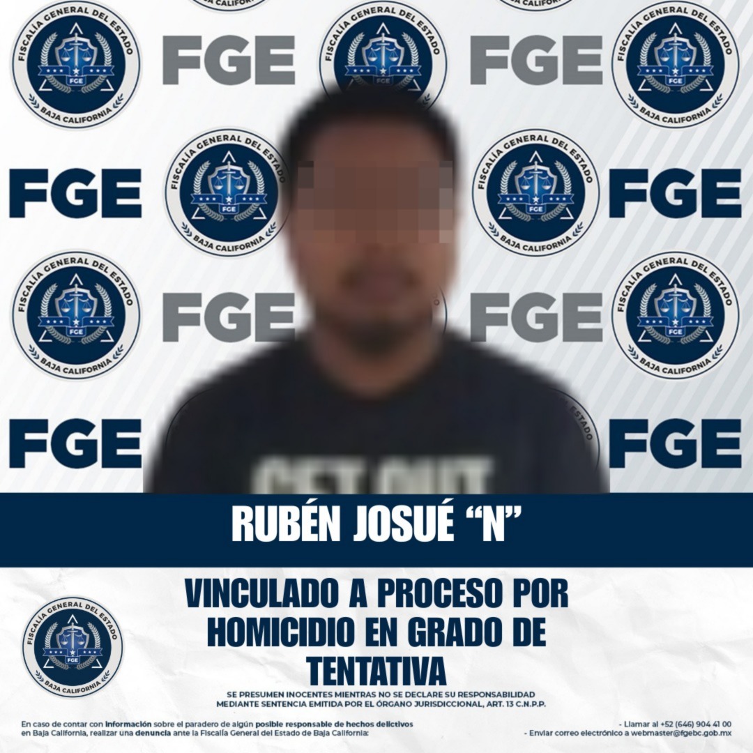 ENSENADA, BAJA CALIFORNIA. - La Fiscalía General del Estado logró la vinculación a proceso de Rubén Josué “N”, alias “El Shrek”, señalado como presunto responsable de homicidio calificado en grado de tentativa, tras los trabajos de investigación realizados por la Fiscalía Especializada en Delitos contra la Vida.