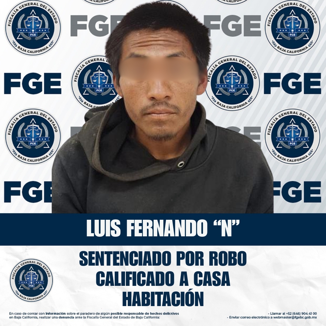 SAN QUINTÍN, BAJA CALIFORNIA. - La Fiscalía Regional de San Quintín obtuvo sentencia condenatoria en contra de Luis Fernando “N” por el delito de robo calificado a casa habitación, como resultado de la investigación realizada.