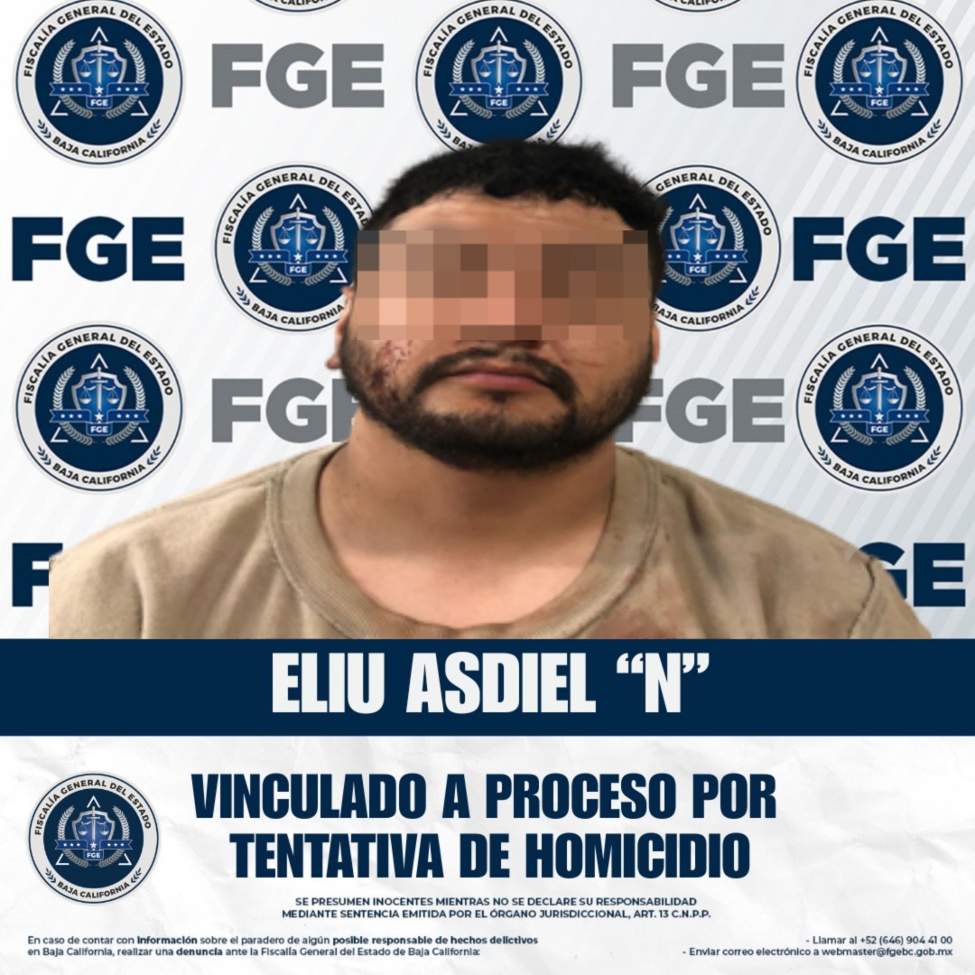 ENSENADA, BAJA CALIFORNIA. - La Fiscalía Regional de Ensenada obtuvo la vinculación a proceso de Eliu Asdiel “N” por el delito de homicidio calificado en grado de tentativa, luego de que el agente del Ministerio Público presentara datos de prueba suficientes ante el juez de control.