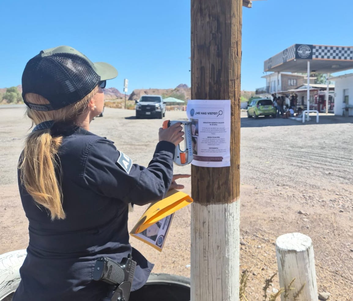 De manera simultánea, se llevó a cabo una diligencia de prospección individualizada enfocada en la localización de Jesús Guadalupe Becerra Ruiz. A partir de las 09:00 horas, elementos de la Agencia Estatal de Investigación (AEI) se adentraron en zonas de difícil acceso al sur y poniente de San Felipe.