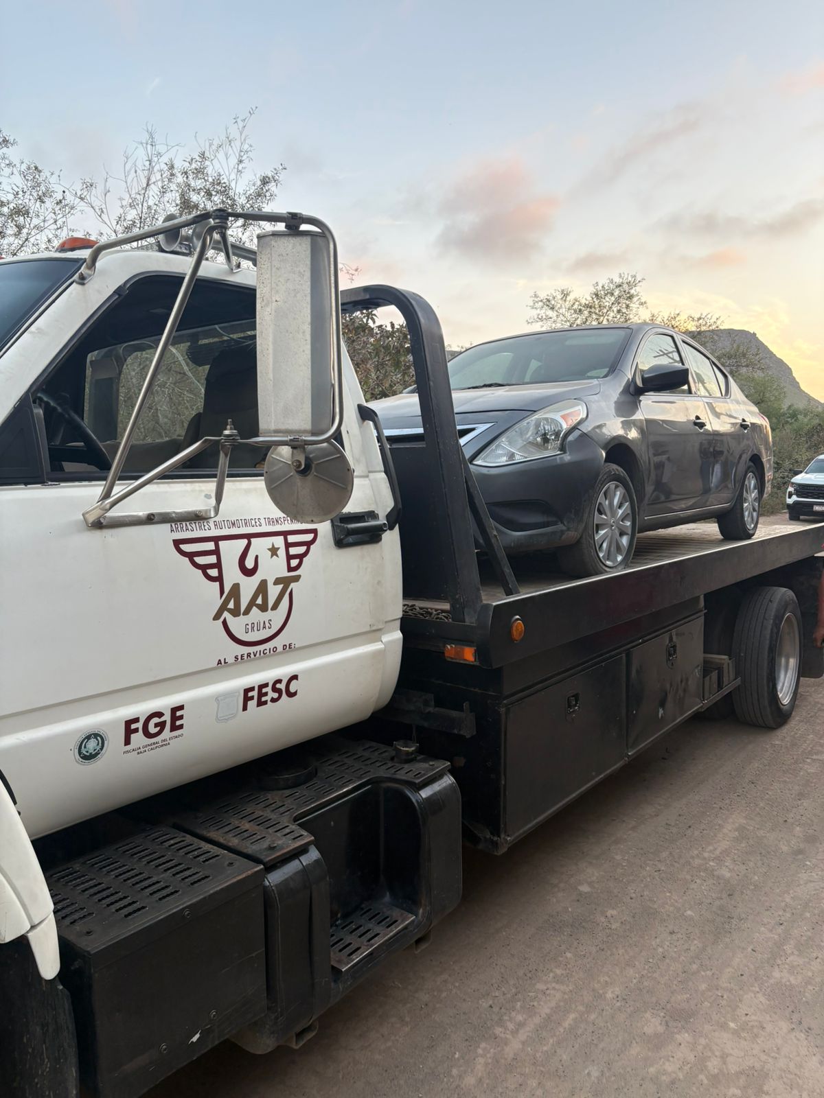 En el sitio, agentes del Ministerio Público y elementos de la Agencia Estatal de Investigación localizaron un automóvil marca Nissan, línea Versa, color gris, modelo 2016. Al verificar la serie vehicular, confirmaron que contaba con reporte de robo activo desde el 5 de enero de 2026.