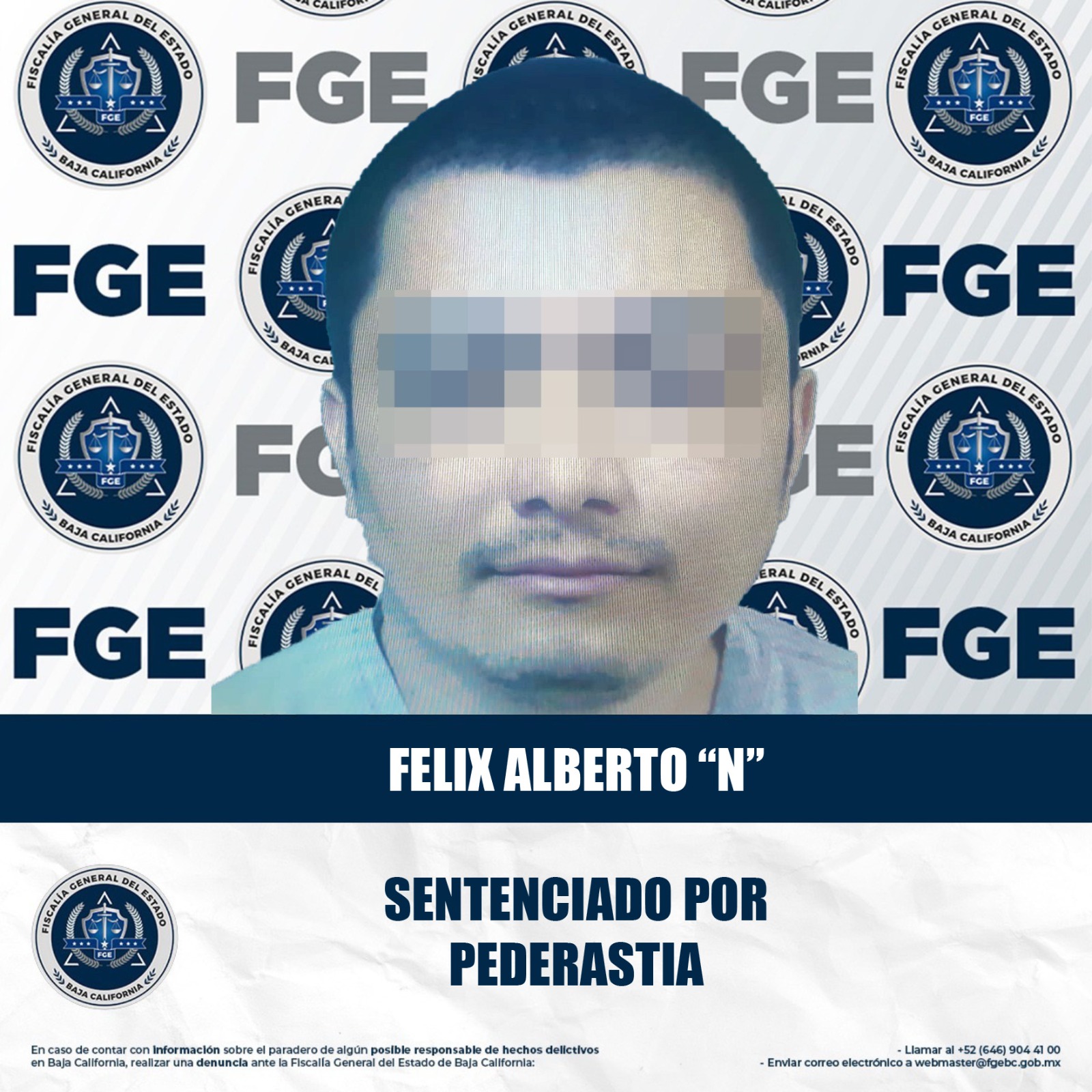 MEXICALI, BAJA CALIFORNIA. - La Fiscalía General del Estado (FGE), a través de la Fiscalía Especializada en Delitos Relacionados con la Violencia de Género contra las Mujeres, obtuvo a sentencia condenatoria en contra de Félix Alberto “N”, por su responsabilidad penal en el delito de Pederastia.