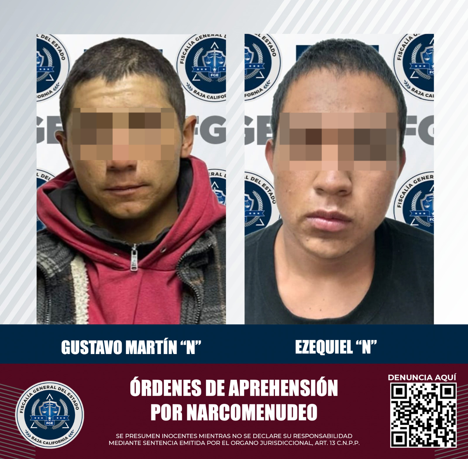ENSENADA, B.C. Derivado de investigaciones realizadas por la Fiscalía Especializada en Narcomenudeo es que se obtuvieron las órdenes de aprehensión cumplimentadas a Ezequiel y Gustavo Martín “N”, por posesión de metanfetamina y marihuana.