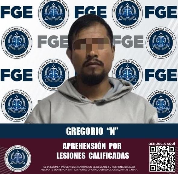 SAN QUINTÍN, B.C. La Fiscalía Regional de San Quintín cumplimentó un mandato judicial que pesaba en contra de Gregorio ¨N¨; presuntamente habría atacado con una navaja a dos personas lesionándolas en la cara y diversas partes del cuerpo.