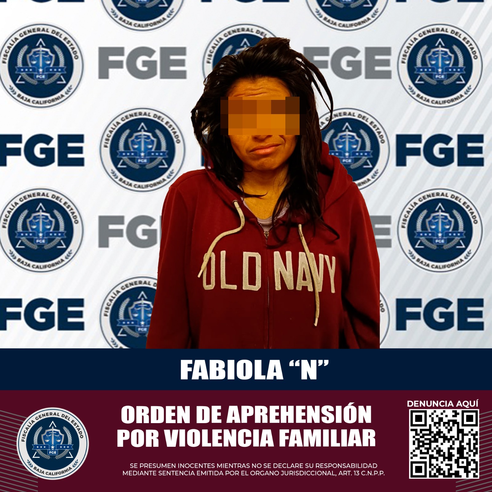 El mandamiento judicial cumplimentado fue en contra de Fabiola “N”, de 31 años de edad, presunta responsable de un incidente violento contra integrantes de su familia, ocurrido el 2 de junio de 2022, en una vivienda del ejido Villa Zapata, en el Valle de Mexicali.
