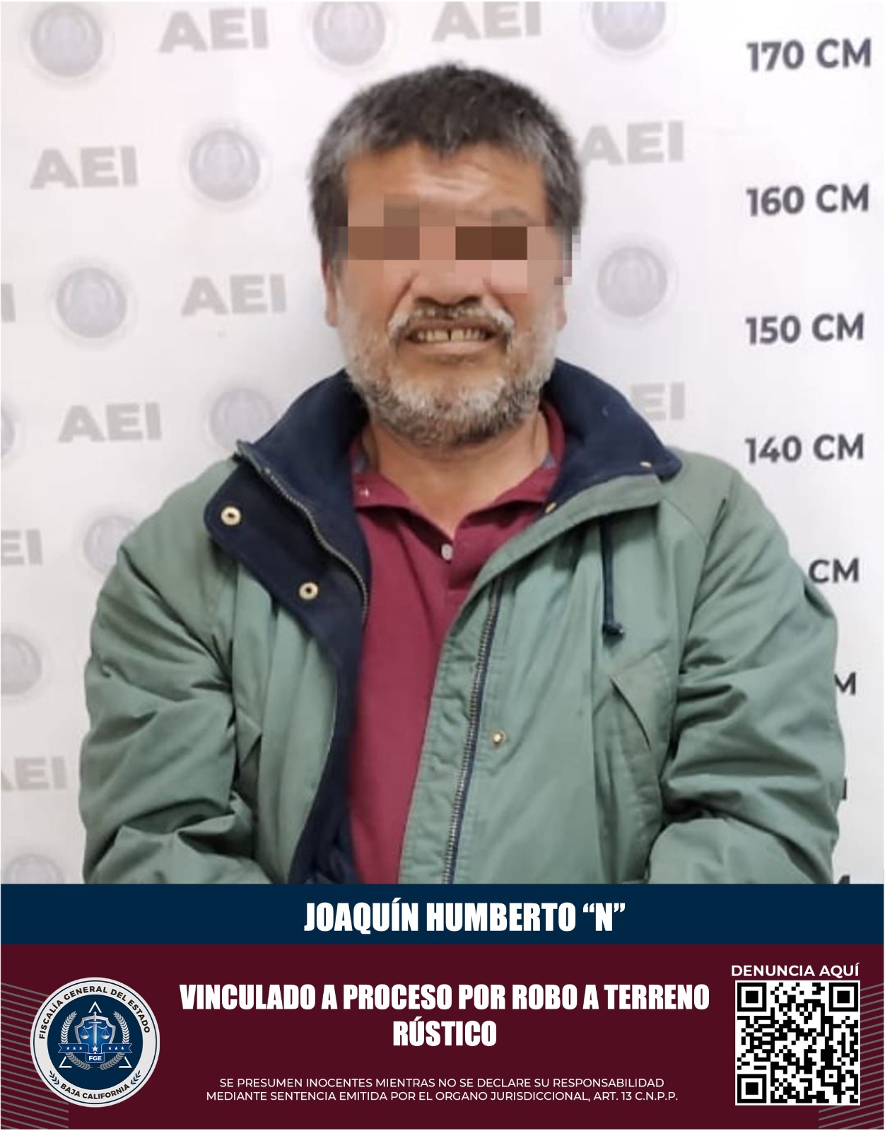 MEXICALI, B.C. La Fiscalía Regional de Mexicali, a través del trabajo desempeñado por la Unidad de Investigación de Delitos Foráneos Guadalupe Victoria, obtuvo la vinculación a proceso de Joaquín Humberto “N” por presuntamente cometer el delito de robo en terreno rústico.