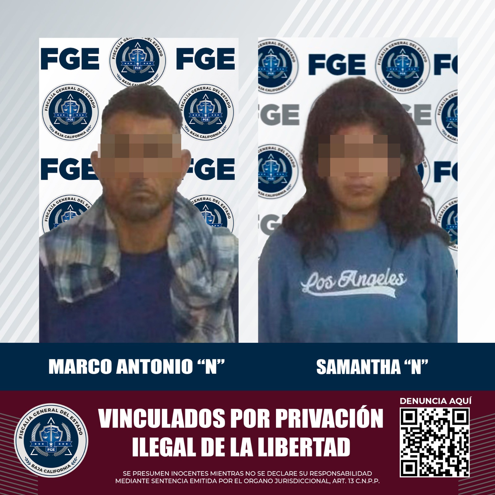 MEXICALI, B.C. Un hombre y una mujer acusados del delito de privación ilegal de la libertad agravada, quedaron bajo proceso penal con base a las pruebas presentadas por la Fiscalía Regional de Mexicali, a través de la Unidad de Investigación con Detenidos Oriente.