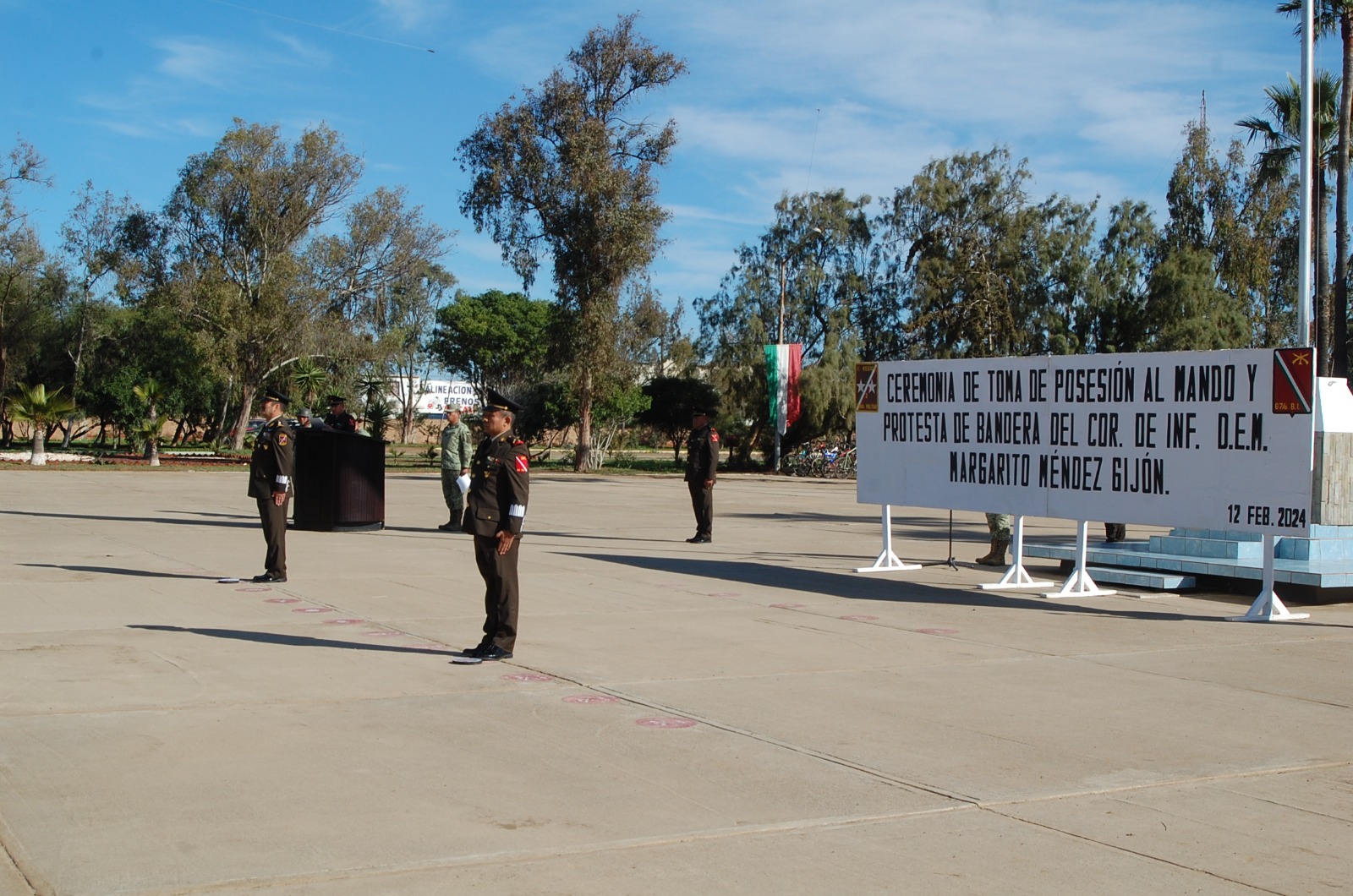 SAN QUINTÍN, B.C. En el marco de una ceremonia realizada en las instalaciones del 67 Batallón de Infantería en el municipio de San Quintín, el Fiscal Regional, Fernando Maldonado Lamadrid, asistió a la toma del mando y protesta de bandera del nuevo comandante, el Coronel de Infantería Diplomado de Estado Mayor (DEM), Margarito Méndez Gijón.